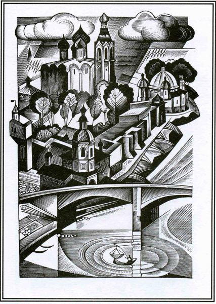 Владислав Сергеев воплотил в графике образы, стилистику памятников архитектуры и художественное мироощущение Кирилло-Белозерского и Ферапонтова монастырей.