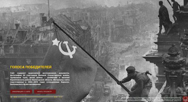Голоса победителей можно услышать на сайте Кирилло-Белозерского музея-заповедника В 2012 году, накануне дня Победы, сотрудники Кирилло-Белозерского музея-заповедника разработали и осуществили проект по созданию компакт-диска «Голоса победителей». Он содержит в себе аудиозаписи воспоминаний участников Великой Отечественной войны и тружеников тыла – уроженцев и жителей Кирилловского района. Позднее эти аудиозаписи были размещены в специальном разделе на сайте музея по адресу . На сайте содержатся не только аудиозаписи, но и документы, фотографии 65 участников Великой Отечественной войны, тружеников тыла, детей войны. Каждому из них посвящается отдельная страница. Проект «Голоса победителей» можно назвать аудиокнигой о войне: общее время звучания на сайте составляет около тридцати часов. Материалы для него были подготовлены в 2004-2012 годах сотрудниками Кирилло-Белозерского музея-заповедника. Рассказы очевидцев дают бесценный материал, дополняющий историю всенародного подвига. В годы Великой Отечественной войны фронт не дошёл до Кириллова, но более 17 тысяч земляков сражались на всех фронтах и во всех родах войск. О своей войне рассказывают простые солдаты: сапёр, пулемётчик, артиллерист, связист, пехотинец, зенитчица, медсестра, радистка… Многие из них были награждены боевыми орденами и медалями. На диске звучат воспоминания Героя Советского Союза А.В. Андреева (1921-2009), уроженца Кирилловского района, чьё имя носит Ферапонтовская средняя школа. С каждым годом все меньше остается очевидцев событий военного времени, происходивших на фронте и в тылу. Проект «Голоса победителей» призван служить делу сохранения памяти о ветеранах, способствовать воспитанию у подрастающего поколения чувства благодарности и признательности. Информация Кирилло-Белозерского музея-заповедника