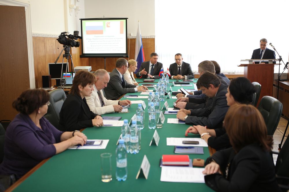 Соглашение о сотрудничестве между Правительством Вологодской области и Федеральным агентством по туризму подписали 25 июля 2013 года в Москве Губернатор Олег Кувшинников и глава Ростуризма Александр Радьков. Речь идет о реализации мероприятий в рамках федеральной целевой программы «Развитие внутреннего и въездного туризма в РФ на 2011-2018 годы». Государство взяло на себя обязательство профинансировать часть инвестиционных проектов, направленных на развитие туристского потенциала Вологодской области. Первый транш в размере 10 миллионов рублей будет направлен на строительство транспортной развязки к выставочному комплексу «Вологодская слобода» близ моста 800-летия Вологды. Именно эта слобода, на которой стараниями города и частных инвесторов уже появились почти два десятка тематических домов и несколько мини-музеев (в том числе, музеи валенка, самовара и льна), станет отправной точкой для реализации масштабного проекта «Насон-город». Создание туристско-рекреационного кластера позволит не только выполнить большой объем работ по благоустройству исторической части областного центра, но и приведет к появлению новых объектов сервисной инфраструктуры. Среди них – еще один мост через реку Вологду, причал для водных трамваев, ресторан национальной русской кухни, оранжерея. Особняком в этом списке значится создание гостиничного комплекса «Дворянские усадьбы XIX-XX веков». Комплекс будет располагаться на противоположном берегу от центральной части выставки и будет включать в себя усадебные здания с декором и интерьером исторической городской среды прошлого, в которых разместятся гостиницы, кафе, музеи и выставочные залы. Считается, что реализация проекта «Насон-город» станет катализатором дальнейшего развития туризма в Вологде. И в первую очередь, за счет привлечения частных инвестиций. По словам главы города Евгения Шулепова, к 2020 году на территории парка Мира предполагается создать один из крупнейших на Северо-Западе центров для детского и семейного отдыха, где разместятся Волшебное посольство Деда Мороза, аквапарк, многочисленные аттракционы и торговая зона с кафе и сувенирными лавками. При этом основные зеленые массивы парка сохранятся, все строительство будет идти на существующих сейчас пустырях. Обсуждались на встрече в Федеральном агентстве по туризму и другие проекты, реализуемые в Вологодской области. В их числе – создание автотуристского кластера, дальнейшее развитие усадьбы Гальских в Череповце, завершение строительства центра технических видов спорта «Адреналин», появление спортивно-туристского комплекса на Никольском озере в Кирилловском районе. Инвестиционная стоимость всех этих проектов оценивается в 10 миллиардов рублей, при этом почти 7 миллиардов должны составить средства из внебюджетных источников. «С 2012 года туризм является одной из самых динамично развивающихся отраслей областной экономики, - подчеркнул Губернатор Олег Кувшинников. - Наша цель - увеличить поток въездного туризма практически в два раза – с 1,8 миллионов человек по итогам прошлого года до 3 миллионов в 2020 году. Это будет большим подспорьем как для экономики, так и для социальной сферы всего региона. По прогнозам, через 6-8 лет прямые и косвенные доходы от туризма на Вологодчине могут выйти на третье место в формировании областно