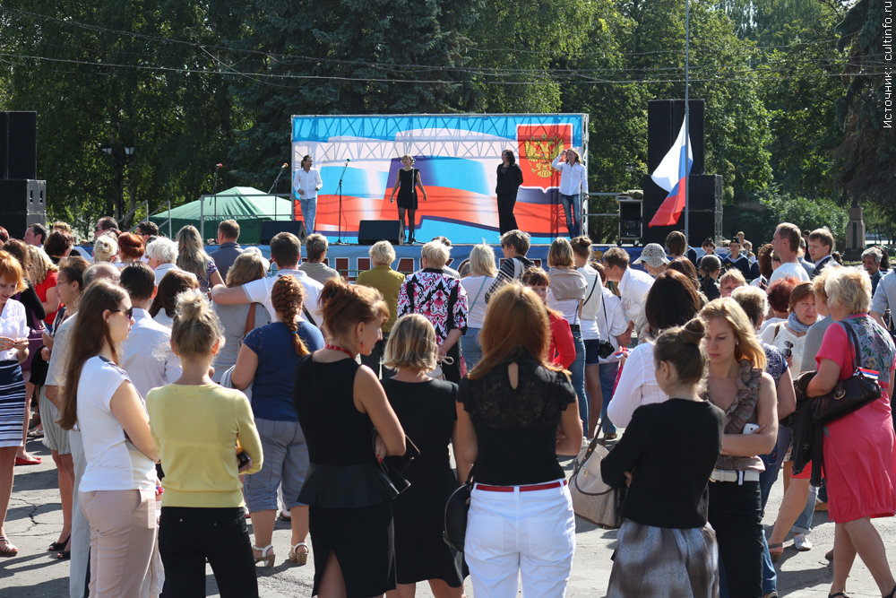 Как известно, государственными символами России являются гимн, герб и флаг. 22 августа в нашей стране отмечают День Государственного флага Российской Федерации. В полдень в Вологде начался праздничный концерт с участием творческих коллективов города. На пл. Революции прозвучали официальные поздравления и состоялось торжественное поднятие флага России. Ведущие концерта поздравили всех собравшихся: «Родина подобна огромному дереву, у которого есть корни и огромное количество листьев. Мы храним историю наших символов. Флаг – один из знаков государства. Под этим знаком россияне будут жить еще многие и многие годы. И мы надеемся, что наши потомки будут сохранять и приумножать наследие поколений, сделают нашу страну еще прекраснее». Со сцены слова поздравлений звучали из уст представителей администрации города и области, творческих коллективов Вологодчины, победителей различных городских конкурсов. Волонтеры во время концерта раздавали трехцветные ленты, а площадь Революции украсил необычный флаг из бумажных цветов. Ольга Поварова | ||