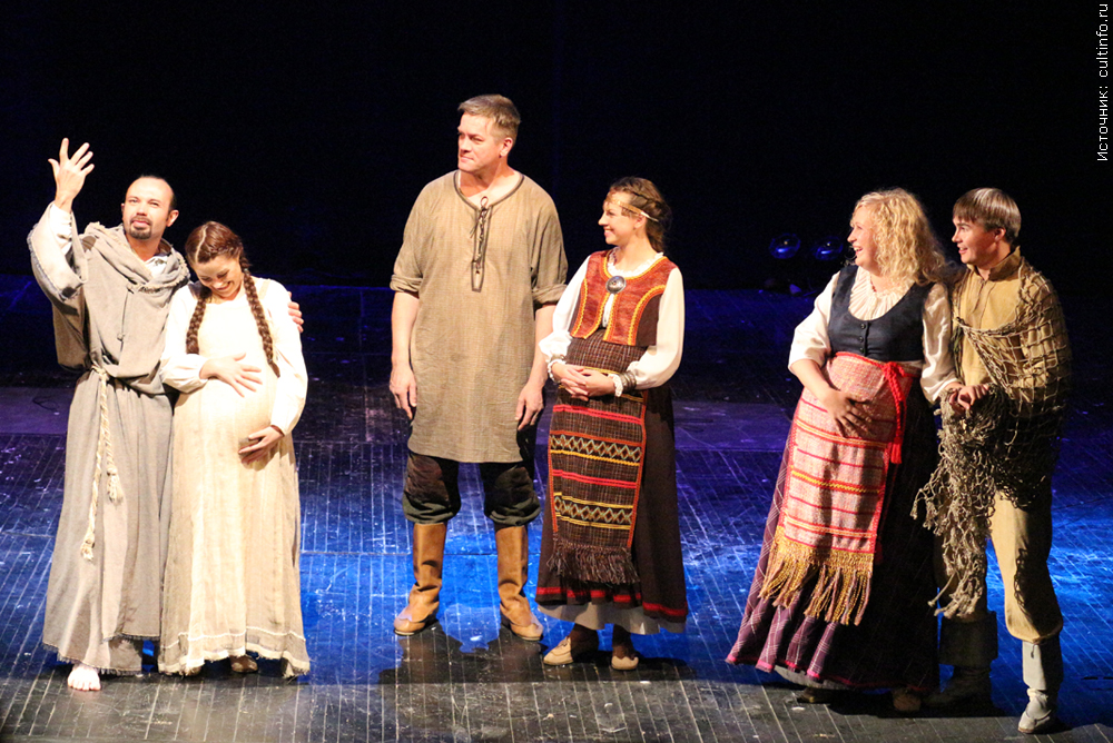 «Вологда-гда» в исполнении священника, черт, читающий стихи Рубцова, – такого реверанса в свою сторону точно не ожидал вологодский зритель от гостей города – Карельского национального театра. Безумно веселая с первых секунд, сказка для взрослых «Ходари» едва не стала безысходно печальной в финале, но все же режиссер Андрей Дежонов не лишил и взрослого зрителя веры в истории со счастливым концом. Главный герой Ходари (он же Федор, он же Хуотари и т.д.) – обладатель характерных мужских пороков, из досье черта следует: пьет, курит, любитель женщин. Однажды Ходари попадает в очень странную деревню (а может, это всего лишь плод больного сознания?), жители которой забыли, как на свет появляются дети. Мужиками здесь моют полы, колют дрова, а детей ищут в картошке: сажают ее каждый год, сажают, а рождается только картошка – крупная, синеглазая, но картошка. К ней вообще особое отношение, даже известная христианская добродетель здесь звучит так: «Картошка долготерпит, картошка не превозносится, не гордится…». Бродяге Ходари же такая непросвещенность только на руку – с большим энтузиазмом он принимается улучшать демографическую ситуацию в деревне, тут-то его душа и становится объектом охоты темных сил… В музыкальном полотне спектакля умело соединены этнические мотивы и современные рок-ритмы, а многочисленные истории и предания преподносятся под аккомпанемент оркестра интернациональных самодельных инструментов. Постановка удивляет совместимостью казалось бы несовместимых вещей: к примеру, заветные (эротические) сказки Василия Фирсова, по мотивам которых поставлен спектакль, органично переплетаются с историей о гибели Чапаева, записанной со слов карельского сказочника Матвея Коргуева. Не лишенный фривольности и двусмысленности, спектакль дает глубокую почву для размышлений: в век технократии люди позабыли о простых истинах, о том, что детей нужно искать не в картошке – дети рождаются в любви. Пусть Ходари (греч. «Божий дар») и образец антиповедения, жизнь все же продолжается именно благодаря ему.
