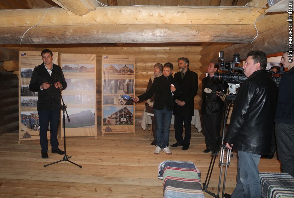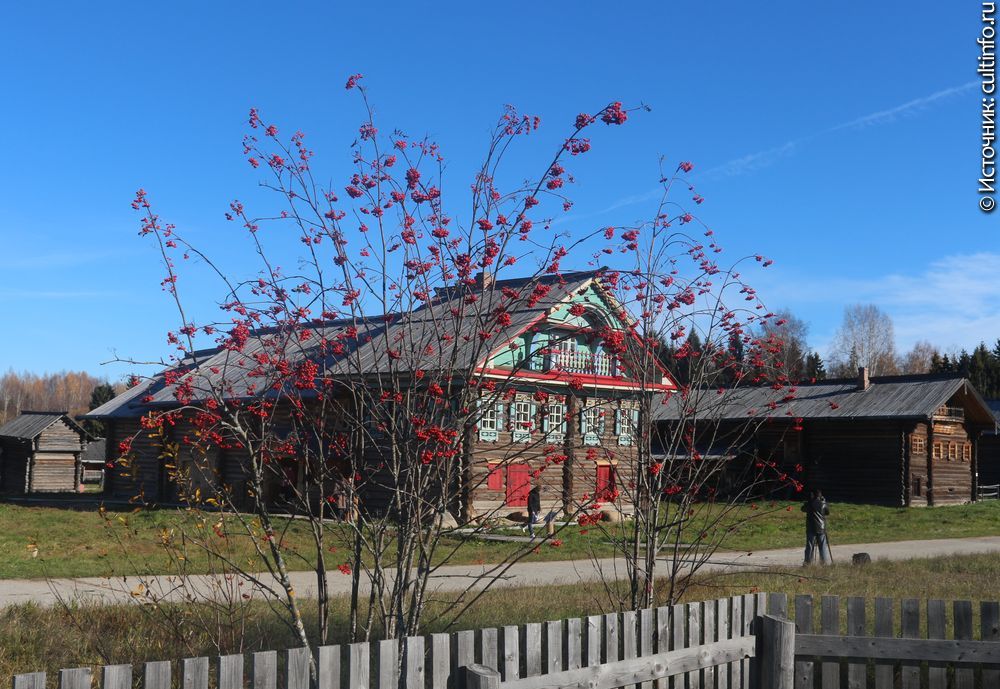 В музее «Семёнково» прошла презентация интерьеров дома Копылова, работа над восстановлением которых велась в течение года Атмосфера жизни зажиточной крестьянской семьи в конце XIX века воссоздается в доме Копылова, перевезенном в музей «Семёнково» 2009 году из деревни Коростелёво Сямженского района Вологодской области. 16 октября 2014 года сотрудники музея представили результаты работ по восстановлению интерьера дома. Крестьянский дом был отражением жизни семьи – ее многочисленности, достатка, рода занятий хозяев. На основании натурного исследования памятника, дендрологического анализа, изучения семейной легенды и составления родословного древа семьи Копыловых сотрудники музея «Семёнково» восстановили историю жизни дома. В 1870-е годы он представлял собой типичный дом важского типа на два жилья. В 1890-е годы к дому была прирублена зимовка, а в 1920-е в связи с делением имущества между двумя братьями дом был разделен на две части – одну из них можно видеть сейчас в музее, а задняя часть дома осталась на историческом месте, в деревне Коростелево. Проект реставрации дома, автором которого является архитектор Сергей Гельфер, предполагал восстановление хозяйственного двора и утраченного крыльца, реставрацию элементов декора фасада и восстановление элементов интерьера с отделкой внутренних стен летней избы. Элементы сруба передней части дома хорошо сохранились, а утраты по зимовке и хозяйственному двору были столь значительны, что их восстановили методом новодела. Реставрация фасада дома Копылова проводилась в рамках проекта «Сохраним русский дом на Русском Севере» на средства гранта Посольского фонда по сохранению культурного наследия Государственного Департамента США и на средства областного бюджета, ее результаты были представлены в 2012 году. В 2013-м музей «Семёнково» получил второй грант – на восстановление интерьеров. Реставрационные работы вели реставраторы Вологодского музея-заповедника под руководством Николая Федышина. Мастера восстановили внутренние двери дома – необычно высокие для крестьянского жилища, покрытые плоской резьбой и геометрической росписью. Необходимо было очистить дверное полотно от поздних красочных слоев, обеспылить, закрепить первоначальный красочный слой. Так же были отреставрированы фрагменты расписной заборки, которую недавно передали музею Вера Михайловна и Николай Серафимович Соколовы, хозяева второй части дома, оставшейся в Коростелево. Уникальность интерьеру летней избы придает и то, что ряд комнат был оклеен обоями – они также исследуются и восстанавливаются, и впоследствии музей планирует оклеить стены. Дом Копылова уже успел стать своеобразным символом музея «Семёнково». Впоследствии он станет местом проведения новых интерактивных программ. В день презентации интерьеров гостей уже встречали его «обитатели»: хозяин лавки Михаил Копылов, его сын Василий с молодой женой и известная всей округе Маремьяниха – Маремьяна Копылова, жена Михаила, ставшая после смерти мужа хозяйкой дома и взявшая в свои руки торговлю лесом, благодаря которой семья жила в достатке. Выставка, рассказывающая о проекте «Сохраним русский дом на Русском Севере», оформлена на повети дома. Подводя итоги презентации, директор Вологодского музея-заповедника Александр Суворов вручил благодарности му