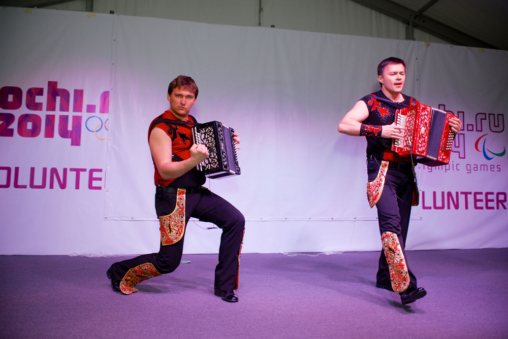 Вологодские артисты создают праздничную атмосферу в олимпийском Сочи 18 февраля жители волонтерской деревни «Морозко» встречали Деда Мороза и артистов шоу-дуэта «Мастер-класс». В этот вечер ребята здорово повеселились: нарядили с Дедом Морозом необычную елку, сплясали под задорное выступление вологжан, а потом все дружно пожелали новых побед российской сборной! На следующий день уже ансамбль «Русский Север» выступал на одной из центральных концертных площадок Олимпийского парка – сцене экспозиции регионов России. Эта площадка за время Игр приняла не один десяток знаменитых коллективов со всей России, таких как ансамбль «Русская песня» под управлением Надежды Бабкиной, Государственный академический ансамбль песни и пляски донских казаков (Ростов-на-Дону), ансамбль песни и танца народов Севера «Энер» (Магадан), шоу барабанщиков «Percussion project» (Томск) и другие. Выступление нашего коллектива привлекло особое внимание посетителей парка: все были поистине очарованы концертным номером «Вологодские кружева». Вместе с артистами гости парка сделали веселую зарядку и, конечно, спели знаменитую «Калинку». По информация Вологодской филармонии | ||