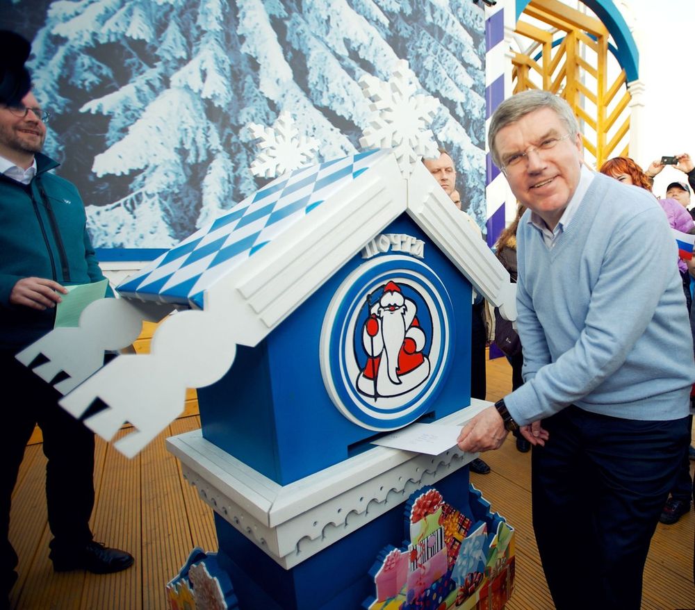 Президент Международного олимпийского комитета Томас Бах 20 февраля 2014 года посетил резиденцию Российского Деда Мороза в Олимпийском парке Сочи. Дед Мороз пригласил господина Баха посетить его Вотчину в Великом Устюге и выразил надежду, что под патронажем МОК там появится детская спортивная деревня. Почетным гостям Дед Мороз рассказал, что в сочинской резиденции выступают десятки творческих коллективов от Калининграда до Владивостока, в том числе ансамбли – победители культурной Олимпиады. Томас Бах также узнал, что Вотчина Деда Мороза – не только туристический, но и спортивный центр, где дети активно занимаются зимними видами спорта. Первые детские спортивные соревнования прошли на Вотчине Деда Мороза в марте прошлого года. В них приняли участие более тысячи детей из разных стран, а награды победителям вручали прославленные олимпийские чемпионы. На соревнования, которые вновь пройдут этой весной, Дед Мороз пригласил Президента МОК в качестве председателя жюри. Глава Международного олимпийского комитета вручил хозяину Резиденции олимпийскую ручку, чтобы Дед Мороз смог ответить на большее количество писем. В ответ хозяин резиденции подарил господину Баху ангела, выполненного из вологодского кружева. Гости также совершили экскурсию в галерею мастеров и увидели, как создается вологодское кружево. Томаса Баха также заинтересовало чернение по серебру и шемогодская резьба по бересте. В завершение визита президент МОК отпустил в Почту Деда Мороза письмо с заветным для себя желанием. Когда немецкие журналисты спросили, что же он загадал, господин Бах ответил: «Дед Мороз сказал, что нельзя говорить, иначе не сбудется. Поэтому пусть пока это остается маленькой тайной». Информация официального портала Правительства Вологодской