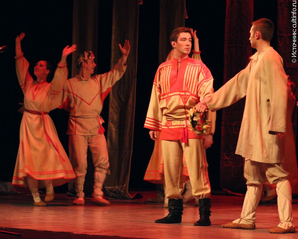 15 апреля 2014 года ансамбль песни и танца «Русский Север» представил на сцене Вологодского драматического театра новый мюзикл «Иван да Марья». В основе сюжета спектакля – народное предание о цветке иван-да-марья, в котором воплотилась память о двух влюбленных, не пожелавших смириться с судьбой-разлучницей. Юные Марья и Иван любят друг друга, но отец девушки против ее брака с бедняком и прочит ее за богатого парня. В отчаянии Иван поддается дьявольскому искушению: дьявол обещает ему счастье с любимой, если он найдет и принесет цветок папоротника, расцветающего раз в году, в ночь на Ивана Купалу. Влюбленные так и не обретают счастья в этой жизни, но трагическая история их любви живет в предании. Мюзикл погружает зрителя в атмосферу народных традиций: протяжных песен и зажигательных плясок, веселых игр и печальных обрядов. Языческие мотивы звучат в обращении героев к Солнцу и Месяцу, в заклинании сил природы, в сценах разгула нечистой силы. Красной нитью через весь спектакль проходит тема противостояния судьбе и необходимости бороться за свою любовь. Автор сценария и режиссер-постановщик мюзикла «Иван да Марья» – художественный руководитель ансамбля народный артист России Евгений Максимов. Музыку к спектаклю написали Евгений Максимов, Анатолий Колесников, Григорий Хинский и Виктория Андреева. Главные роли – Марьи и Ивана – исполняют артисты ансамбля Татьяна Скосырская и Владимир Рогозин. Светлана Гришина | ||