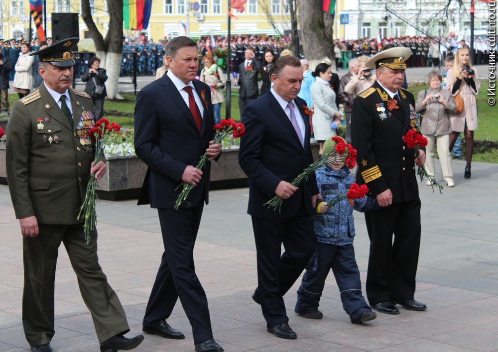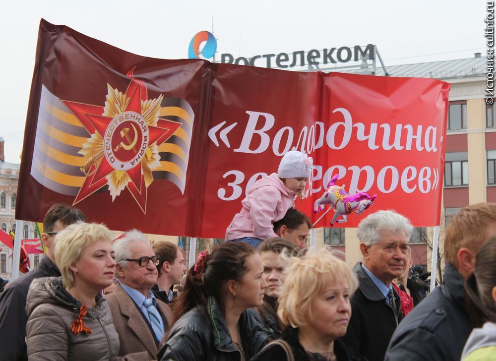 9 мая 2014 года вологжане отмечают 69-ю годовщину Победы в Великой Отечественной войне. На площади Революции состоялись торжественный митинг и военный парад. Губернатор Вологодской области Олег Кувшинников в своем приветственном слове к собравшимся сказал о величии подвига русского народа в годы Великой Отечественной войны: «69 лет назад закончилась самая страшная и кровопролитная война в истории человечества. Цена этой победы – десятки миллионов жертв, разрушенные города и села, разрушенная экономика, миллионы эвакуированных. Вологодская область отправила на фронт лучших сынов и дочерей: 340 тысяч вологжан ушли на фронт, более 180 тысяч погибли на фронтах Великой Отечественной. Сегодня миллионы россиян вышли на центральные площади наших городов, чтобы отдать дань уважения ветеранам, которые выстояли и победили. Хочется сказать им слова искренней благодарности и за то, что в тяжелые послевоенные годы мы восстановили города, села и предприятия, подняли экономику. И сегодня Россия – великая держава, которая выдержит любые трудности». Губернатор поздравил вологжан с великим праздником и принял участие в церемонии возложения цветов и венков к мемориалу «Вечный огонь Славы». О героизме вологжан, проявленном в годы Великой Отечественной войны, говорил Николай Матяш, полковник в отставке, помощник военного комиссара Вологодской области по работе с ветеранами, участник боевых действий в Афганистане, Южной Осетии и Абхазии: «1418 дней и ночей шла тяжелая борьба на фронтах и в тылу. Но советский народ и армия выстояли и победили фашизм, освободив не только территорию своей страны, но и народы Европы от порабощения и насилия. Победа досталась нам высокой ценой: 27 миллионов наших соотечественников отдали свои жизни за Родину. 175 вологжанам было присвоено звание Героя Советского Союза. Среди награжденных есть такие, кто получил это звание дважды – маршал Иван Конев, летчик-истребитель Александр Клубов. 30 вологжан стали полными кавалерами Ордена Славы, а вытегорец Николай Кузнецов стал полным кавалером Ордена Славы и героем Советского Союза. В Вологодских госпиталях во время войны проходили лечение десятки тысяч бойцов. Наши отцы, деды и прадеды не жалели для победы ни крови, ни жизни». Со словами благодарности ветеранам на митинге выступили представители молодого поколения. Филипп Суворов, учащийся 9-го кадетского класса школы № 15 им. А. Клубова: «Сегодня день, важный для всех поколений, а для нас, молодых, особенно. В нашей семье не было кадровых военных, но наши мужчины не прятались за спины других. Мой прадед, Белых Леонид Семенович, ушел на войну в 1941 году, был награжден медалью «За отвагу». Весной 1944 года он пропал без вести под Ленинградом. Я горжусь своим прадедом и всеми, кто дал нам возможность спокойно расти. Сердца собравшихся здесь ветеранов хранят скорбь тех дней, и для нас, как и для них, 9 мая – великий день в истории России». В праздничном параде на площади Революции приняли участие военнослужащие, курсанты Вологодского института права и экономики, кадеты. Замыкал праздничный парад «Бессмертный полк». Эта негосударственная неполитическая гражданская инициатива, цель которой – сохранить память о погибших в годы войны. В единой колонне памяти вологжане пронесли портреты родных, отдавших жизнь за победу, по всем главным ули