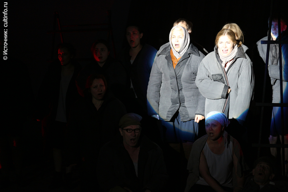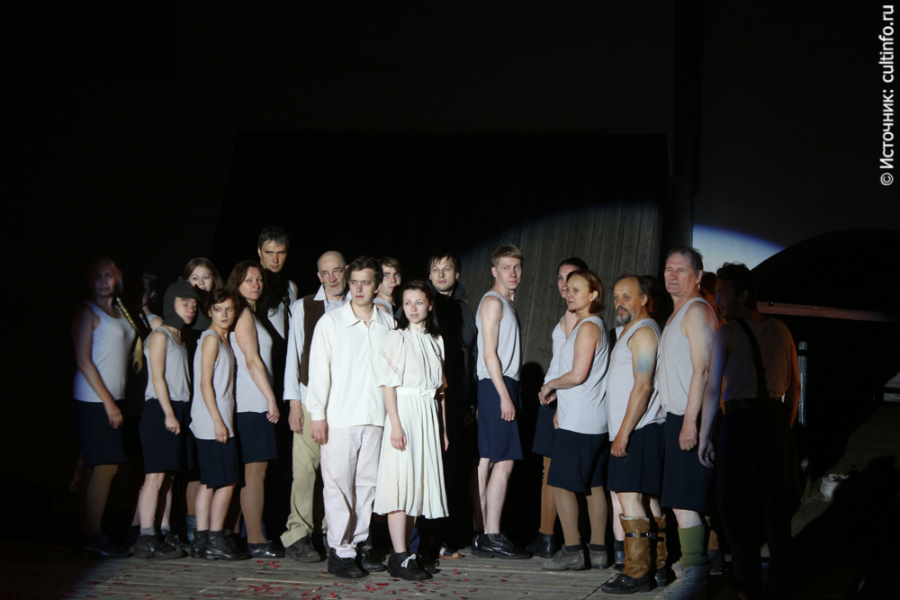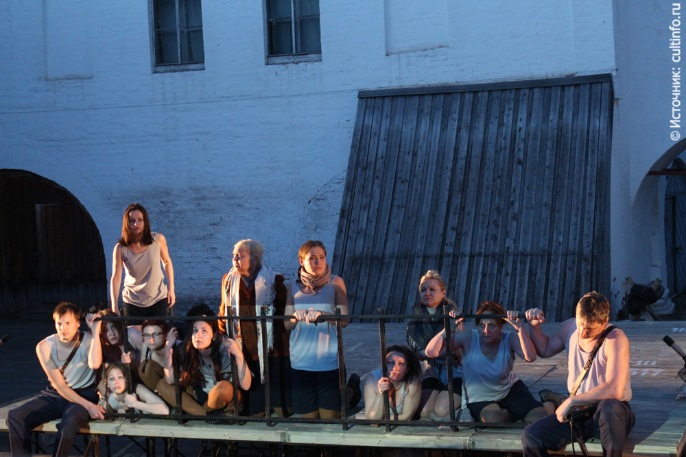 В родном театре этот спектакль показывают в камерной обстановке, на фестивале декорациями к нему служили стены древнего вологодского Кремля, а над головами артистов летали стрижи. Свою нотку в акустику спектакля внесли и звуки колоколов.