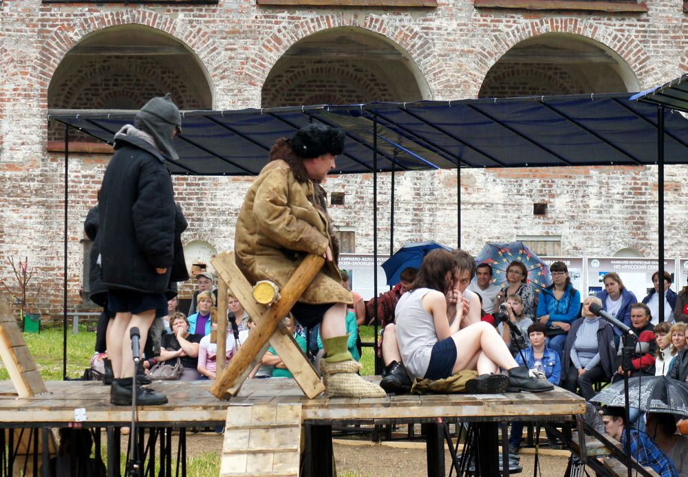 В Кириллове продолжаются показы спектаклей фестиваля «Голоса истории»: накануне на территории Нового города зрители увидели постановку «Вагончик мой дальний» Березниковского драматического театра (Пермь).