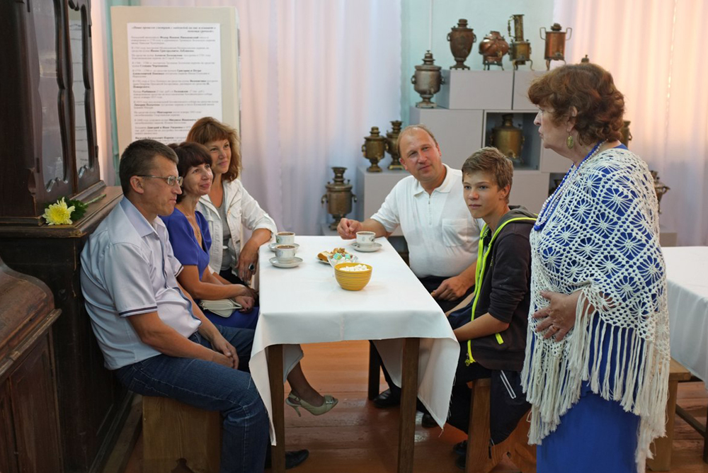 В Тотемском музейном объединении с успехом завершился музейный марафон, в рамках которого всего лишь за неделю открылись три выставки, прошел концерт, творческий вечер, презентация, три интерактивных мероприятия и две бесплатных экскурсии. Так, в новом музейно-выставочном центре впервые состоялось интерактивное импровизационное мероприятие «Купеческие чаепития на Большой Садовой». На протяжении почти пяти часов в интерьерах экспозиции «Тотемская ярмарка» работала купеческая чайная, где гостей принимала купчиха третьей гильдии Аграфена Никодимовна с дочерью Лизонькой. Да не просто принимала, а поила чаем, рассказывала о жизни Тотьмы купеческой, присматривалась к потенциальным женихам для Лизаветы. Восхищенные гости, сами того не замечая, включались в красочную импровизацию и, уходя, оставляли восторженные отзывы. Здесь же работает фотовыставка уроженца Тотьмы, ныне живущего в Сыктывкаре, Александра Мелехова. Александр Иванович привез фотографии, выполненные в необычной манере – на холсте и в рамах, стилизованные под картины. Выставка «Шаги по России» сформирована по итогам многочисленных поездок Александра Мелехова по России, за любовь к которым друзья прозвали фотохудожника сыктывкарским Конюховым. И надо же было так случиться, что выставку в присутствии автора посетил сам Федор Конюхов, гостивший в это время в Тотьме. Встреча двух путешественников прошла в дружеской обстановке. Работы с выставки можно приобрести: все вырученные средства Александр Мелехов направляет на восстановление Спасо-Суморина монастыря в Тотьме. В музее церковной старины участники рубцовской экспедиции «Острова свои обогреваем» организовали концерт «У церковных берез». В нём участвовали Сергей и Наталья Русановы, Елена Изергина, Елена Федина, а также дочь Николая Рубцова Елена Козловская и внучка поэта Анна. В краеведческом музее открылась выставка, посвященная юбилею Тотемского района. Новый проект рассказывает о жизни Тотемского края в двадцатом столетии – пожалуй, самом трудном, но и самом плодотворном для Тотьмы. Авторы выставки сделали акцент на развитии различных отраслей промышленности района, а также сферы культуры, образования, здравоохранения. Проект был открыт в присутствии бывших руководителей тотемских предприятий. Простых людей, жителей Тотьмы и района, их непритязательный и вместе с тем уютный быт, занятия и увлечения отразил в своих фотоработах журналист Сергей Рычков. Познакомиться с экспозицией можно в Музее мореходов. Завершили праздничную программу экскурсии бесплатные экскурсии по городу и залам открытого хранения фондов, а также уже традиционный перезвон Тотьма – Форт-Росс. Из-за океана тотьмичей поздравили Президент национального парка Форт-Росс Сара Свидлер и сотрудник музея, научный консультант Хэнк Бирнбаум.