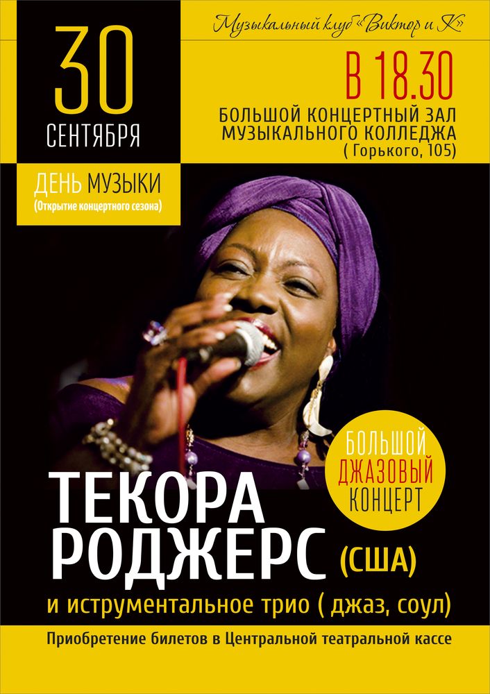 Известная джазовая певица Текора Роджерс (Tecora Rogers) выступит в Вологде с госпел-хором «Чикаго Спиричуэлс» (Chicago Spirituals), созданным ею в 2003 году. Концерт, организованный музыкальным клубом «Виктор и К», пройдет 30 сентября 2014 года в зале Вологодского музыкального колледжа и будет посвящен Международному дню музыки. Начало в 18.30. Текора Роджерс – лучезарная госпел и джазовая певица из Чикаго. Она впервые приезжает в Россию вместе со своим хором. Ежегодно музыканты гастролируют по Европе: Франции, Италии, Швейцарии, Испании, Бельгии – и решили посетить нашу страну. Все исполнители хора пели в церкви с раннего детства и являются виртуозами стиля спиричуэлс и госпел – духовной христианской музыки американского Юга, отличающейся особой энергетикой и присутствием танцевальных ритмов. Именно она дала начало современному R&B. «Чикаго Спиричуэлс» в то же время стараются продолжать музыкальные традиции великих Ареты Франклин, Махалии Джексон. О солистке хора написано много восторженных строк. Тёплый, вибрирующий голос Текоры Роджерс соединяет низкие гортанные и грудные ноты с высокими звуками. «Сочетание джазовой легкости, импровизационности со сложнейшими госпел-пассажами, которые под силу только густым и искусным голосам чернокожих музыкантов, захватывает дух, пробирает все человеческое нутро,» – пишет «Новая Газета». За свою карьеру певица успела поработать с рядом известных американских музыкантов: Уилтоном Фельдером, Ронни Лоусом, Джорджем Фриманом и др. В ее дискографии 7 альбомов, 4 из них записаны с госпел-хором. В программе концерта два отделения. В первом примут участие молодые вологодские музыканты, ярко заявившие о себе в летнее время. Вологжане могли услышать их в Кремлевском парке в День города, на XI Международном фестивале «Блюз на веранде», в рамках проекта «Берег blues». Во втором отделении выступят американские гости. Билеты на концерт продаются в центральной театрально-концертной кассе Вологды. Информация организаторов | ||
