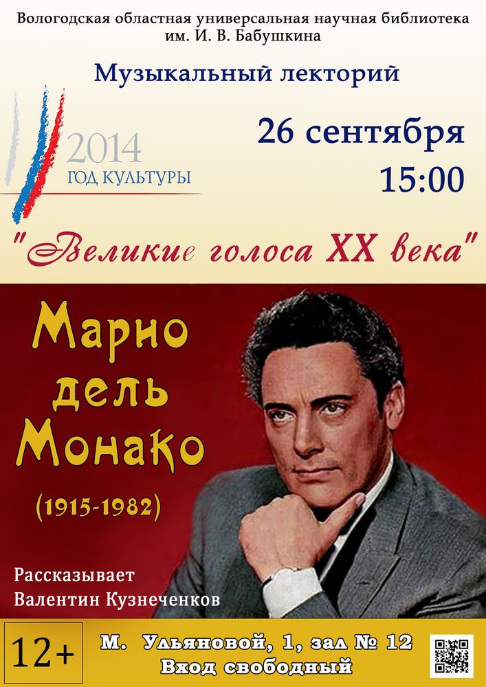 дель Монако расскажет вологжанин Валентин Кузнеченков. Начало в 15.00.