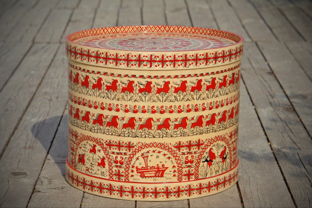 Кони, выполненные красной и черной краской, один из самых популярных орнаментов мезенской росписи. Оригинальная, связанная с древними слоями культуры, мезенская роспись сложилась к началу XIX века в Архангельской губернии и в селах, располагающихся в устье реки Мезени. Самая древняя датированная прялка с мезенской росписью относится к 1815 году, хотя изобразительные мотивы подобной росписи встречаются в рукописных книгах XVIII века, выполненных в мезенском регионе.