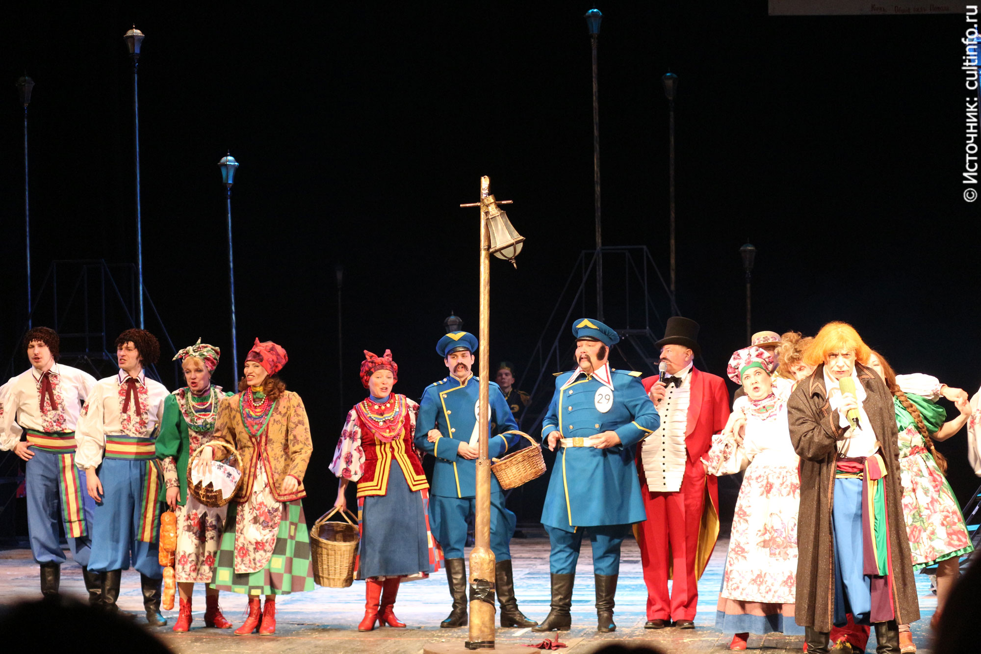 Не все так однозначно с комедией «За двумя зайцами» (реж. Александр Горбань) по пьесе Михаила Старицкого. Может быть, здесь сыграло свою роль невольное сравнение с кинофильмом, снятом в 1961 году режиссером Виктором Ивановым (в главной роли – Олег Борисов). Немало удивило то, что на сайте Архангельского театра целевая аудитория спектакля обозначена как 12+. Некоторые сцены своей откровенностью несколько фраппировали вологодскую публику – к примеру, эпизод с разудалой монашкой, после двух чарок водки скинувшей свое одеяние и представшей неглиже (в фильме он был сделан гораздо скромнее). Или танец-выход участников спектакля, где молодые люди также были полуодеты. Возможно, эти моменты нужны были для того, чтобы «поддать темпераменту», равно как и зажигательные испанские танцы, довольно неожиданные в исполнении украинских парубков и дивчин (пришла на ум пресловутая «смесь французского с нижегородским» – то бишь испанского с киевским). Но, с другой стороны, это явно создавало энергетику спектакля, благодаря которой он, шедший больше трех часов, смотрелся на одном дыхании. К интересным находкам можно смело отнести сценическое оформление. Понравилось «горочное» трио с фонарями и эпизод с фонарным столбом, вырванным из земли потенциальной невестой Проней Прокоповной; удивила «семья» красных роялей в цветочек и их смелое использование в самом разнообразном качестве – от оттоманки до мини-сцены), музыкальное оформление было также насыщенным и являло собой смесь мотивов разных времен (современные мелодии не уступали народным) и народов (от испанского до еврейского) – в котором, однако, украинский колорит не затерялся. Сюжет, довольно известный, в конце вдруг обрел драматическое звучание, когда две претендующие на героя невесты столкнулись у ворот церкви – и по звенящей тишине в зале стало ясно, что зрители, некоторое время назад искренне потешавшиеся над Проней, сейчас искренне ей сочувствуют. А значит, «свидание» вологжан с искусством архангельской Мельпомены можно считать состоявшимся.