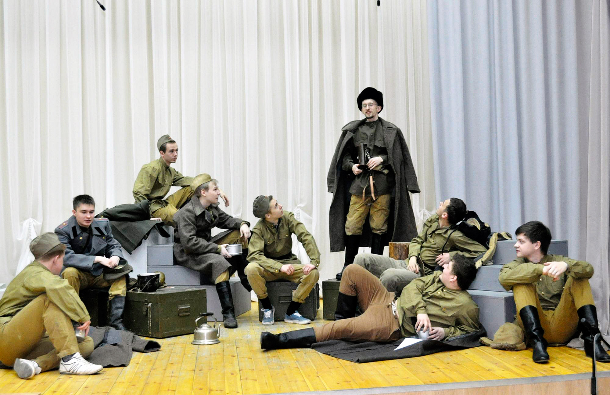 Постановка создана к 70-летию Победы в Великой Отечественной войне. В спектакле занято более 30 студентов, аспирантов и преподавателей Вологодского института бизнеса и Вологодского кооперативного колледжа, также в нем приняли участие студенты других вузов города. Режиссер-постановщик Светлана Масина. Музыкальное оформление – Наталья Черкасова.