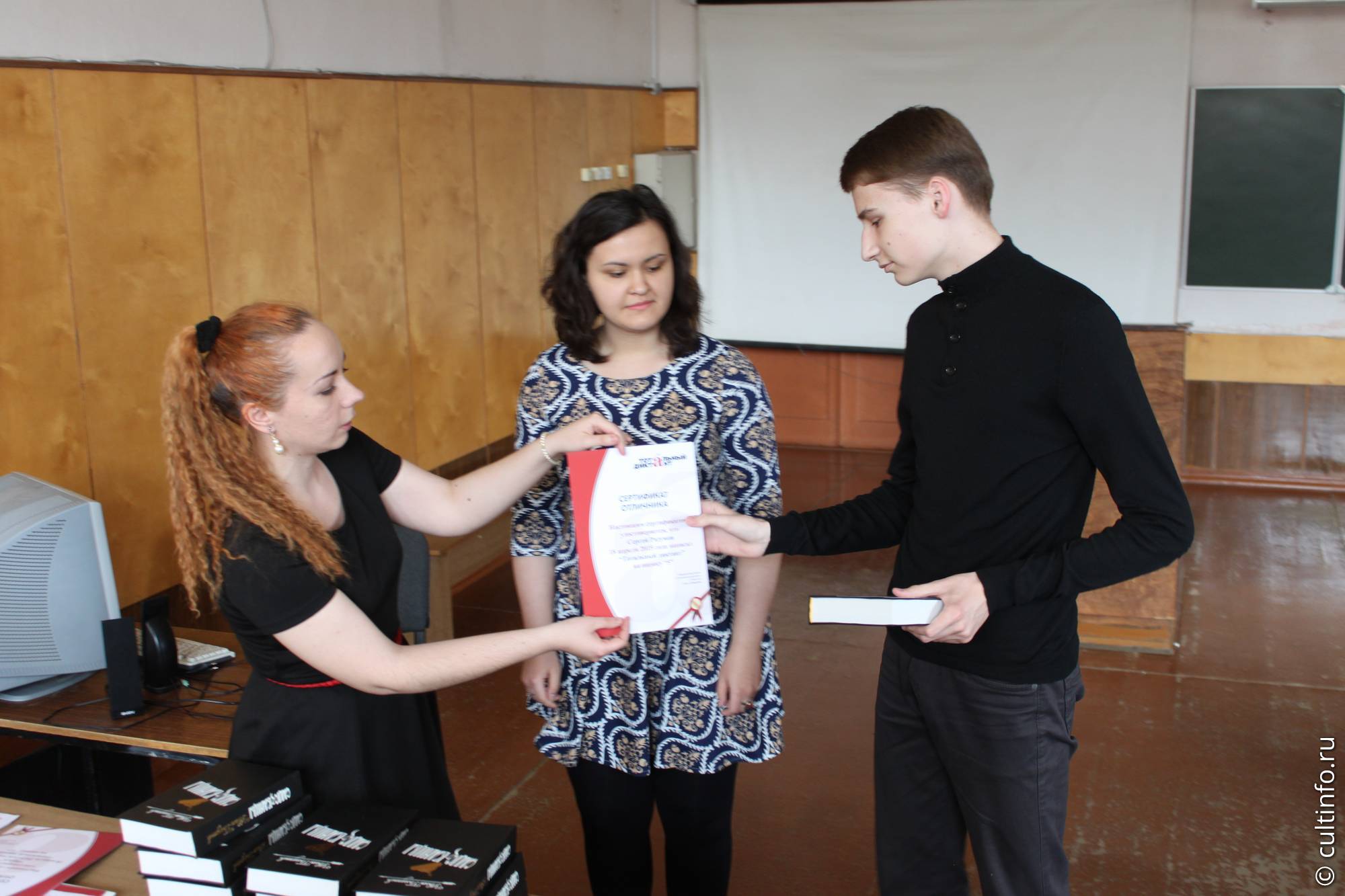 Кстати, редакция портала cultinfo тоже не осталась в стороне. Диплом одного из победителей «Тотального диктанта», сумевшего не наделать ошибок в тексте про брандмейстера и Апокалипсис, сумела получить автор этих строк.