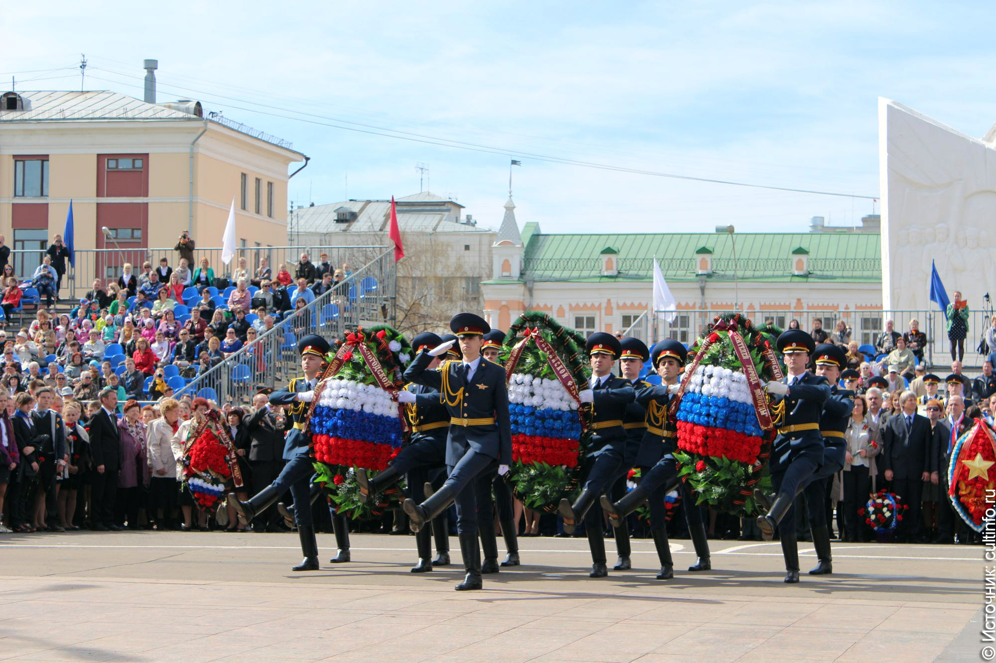Одними из первых в знак памяти и уважения цветы возложили губернатор области Олег Кувшинников, глава города Евгений Шулепов, член комитета Совета Федераций Николай Тихомиров, председатель Законодательного Собрания области Георгий Шевцов. Многочисленные венки от разных организаций и школ города украсили мемориал «Вечный огонь Славы». Минутой молчания почтили подвиг советского народа собравшиеся на площади вологжане.