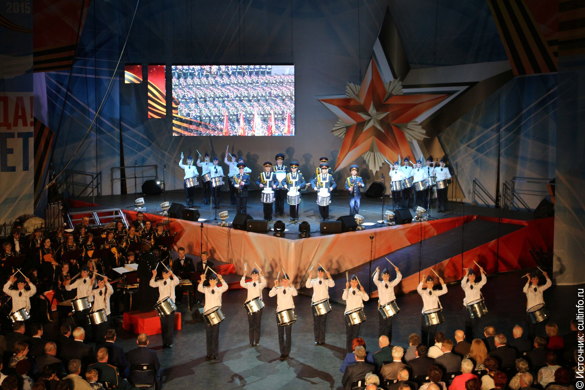 Под звонкие барабаны воспитанниц ВИПЭ началось масштабное действо во Дворце спорта «Вологда», посвящённое 70-й годовщине Победы советского народа в Великой Отечественной войне 1941-1945 гг. «Помнит мир» – такое название мероприятие получило в этом году.