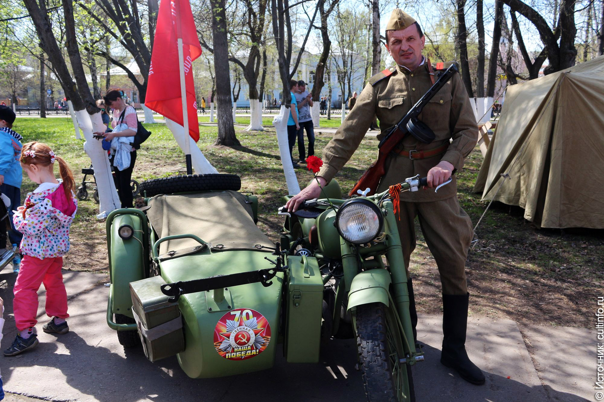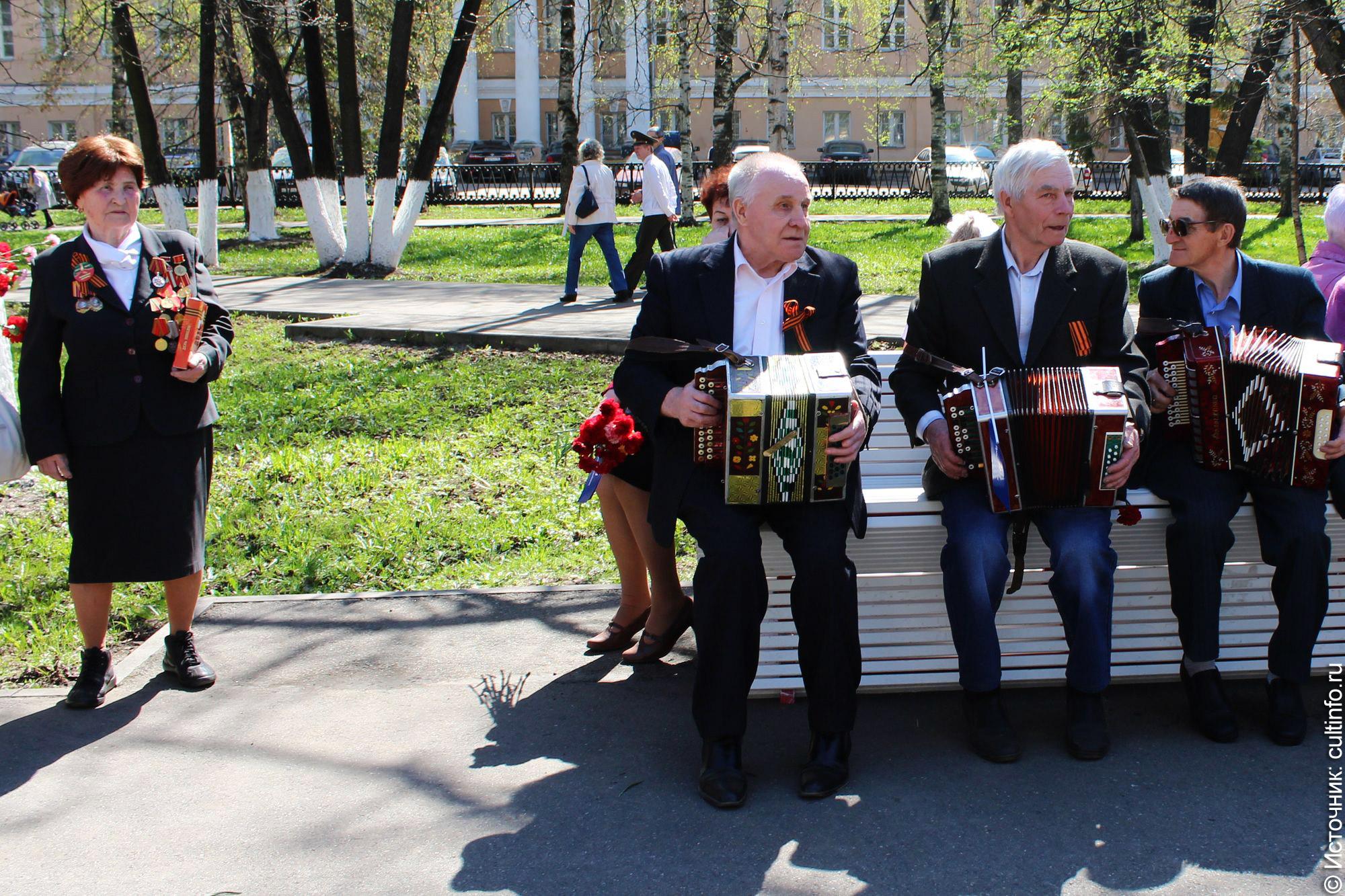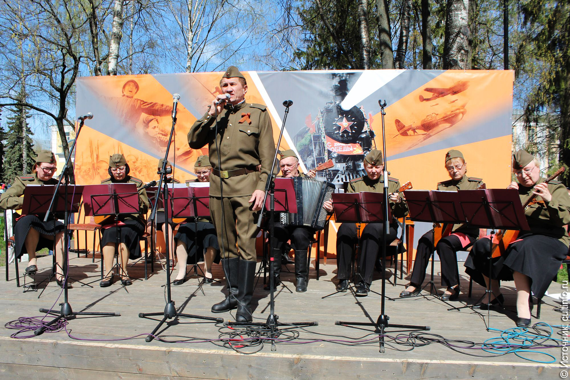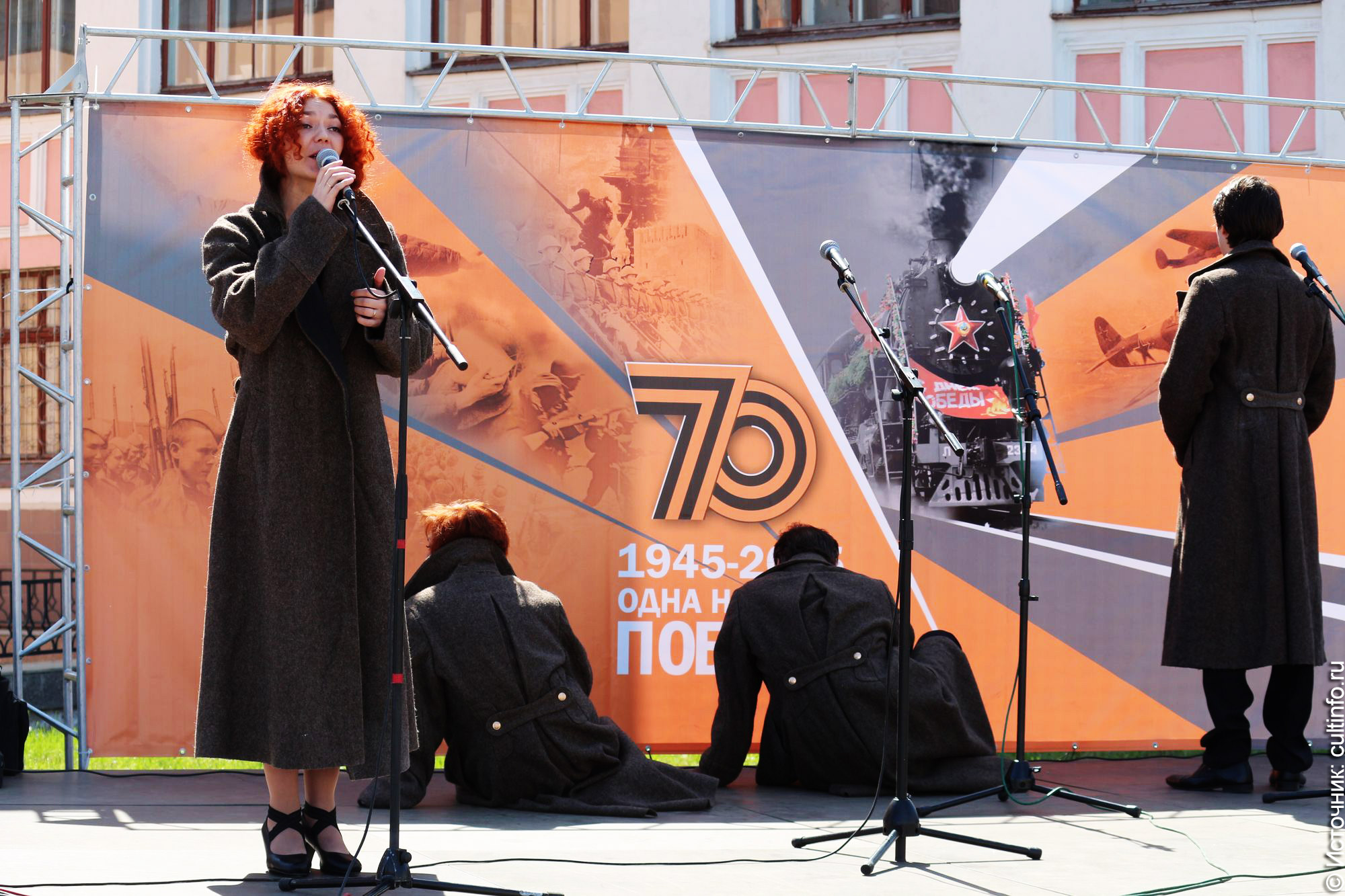 9 Мая в центре города не было ни одного уголка, где бы не разворачивались праздничные события. На главной сцене в течение дня выступали творческие коллективы области. Так, свою новую программу «Сороковые, фронтовые» представил оркестр народных инструментов «Перезвоны». Песни о войне также исполнили хоровые коллективы и ансамбли – участники областных конкурсов, посвященных Дню Победы. Новую концертную программу «Мелодии мая» подарил публике оркестр духовых инструментов «Классик-модерн бэнд». Сменяли друг друга театрализованные представления со стихами и песнями о войне. В Детском парке развернулась историческая реконструкция «Ожившая хроника военных лет», переместившая наших современников в 40-е годы прошлого века. Зритель мог не только посмотреть концерты традиционных агитбригад, но попробовать связаться со штабом по рации, увидеть технику того периода, сфотографироваться с солдатами, побывать на выставке находок поисковиков, научиться маршировать строем. На площадках у кинотеатра «Ленком», возле областной библиотеки, на площади Возрождения непрерывно шли концерты агитбригад, в которых в этот день выступили многие известные коллективы города. Среди них – Вологодский камерный драматический театр, театр-студия «Сонет», театр моды «Истоки»…
