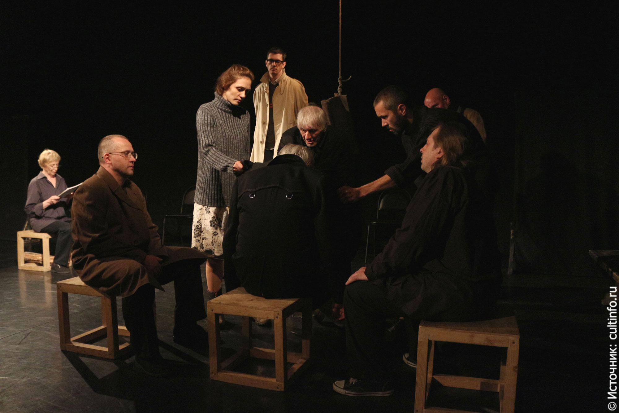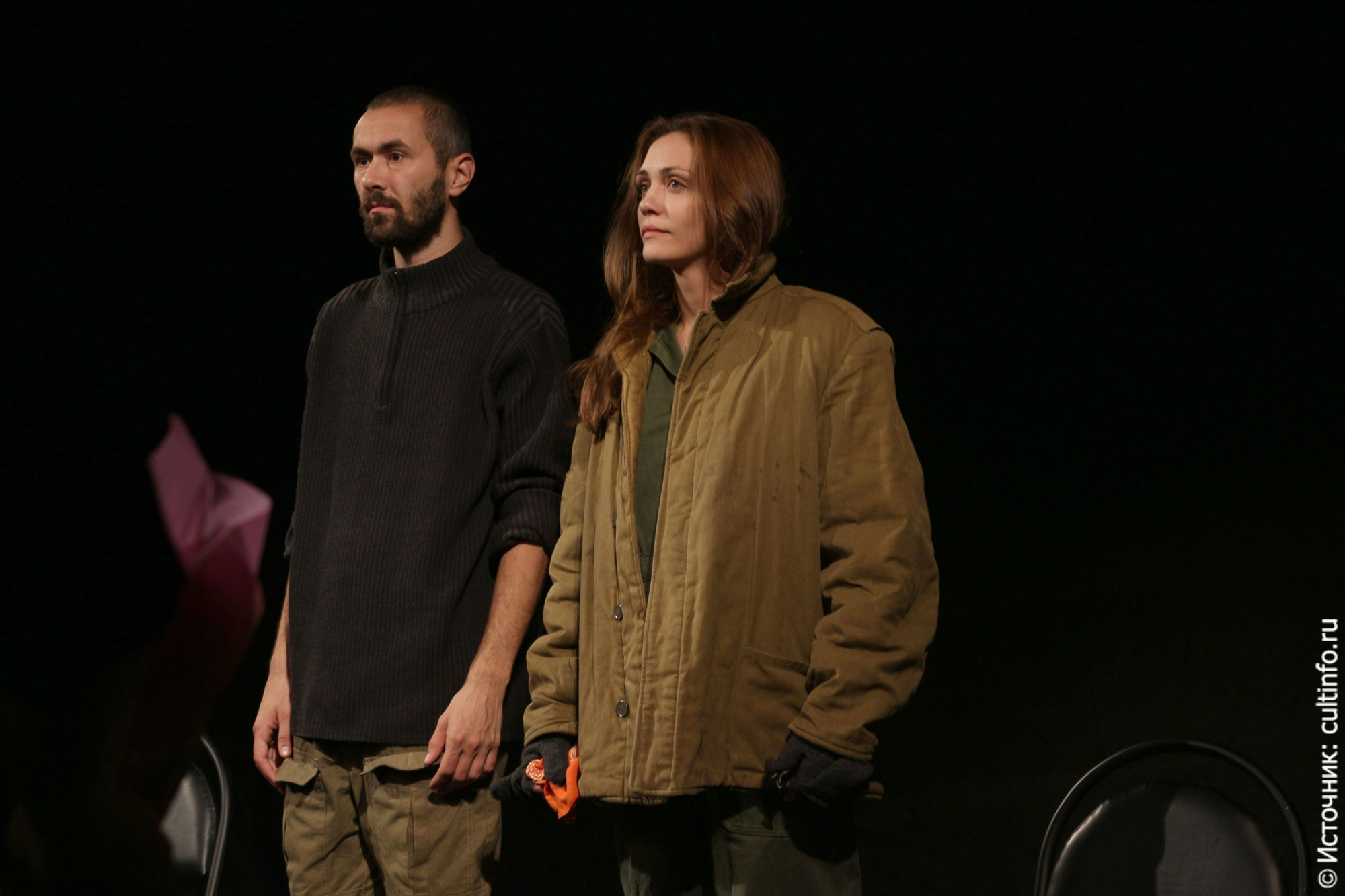 Спектакль получился очень шаламовским, его отличает и точное до мелочей следование тексту и минимизированный до предела антураж. Стулья, лавка, ватники, лопаты, подвешенный рельс – вот все, что составило пространство малой сцены вологодского ТЮЗа. Перед зрителем словно читка пьесы по ролям, словно актеры не играют, а проживают историю, подчеркнуто безэмоционально произнося тот или иной диалог. Да и откуда взяться эмоциям в лагере, где все человеческое выжигается на корню. Человек подстраивается под ситуацию: если ты ловкий, сумеешь вывернуться, а если нет – или не хочешь помогать топить других – пропадаешь сам. Так и случилось с главными действующими лицами.