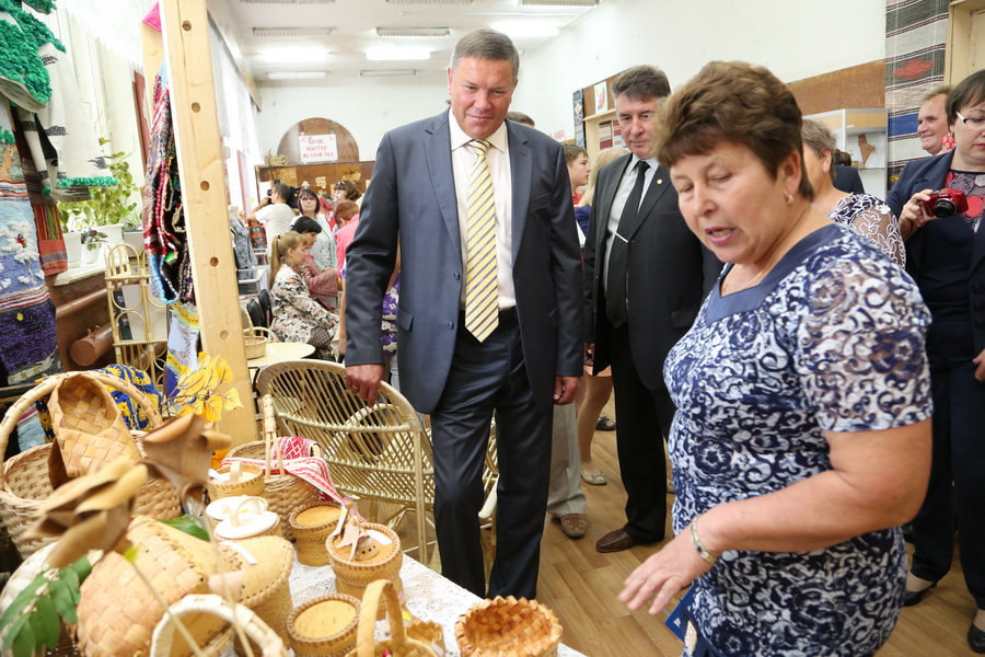 Сегодня, в рамках визита губернатора в Вожегу, в центре открылась выставка народных художественных промыслов и ремесел Вожегодского района и Коношского района Архангельской области. В экспозиции представлены лучшие работы 60 мастеров в основных видах традиционных промыслов и ремесел, организованы мастер-классы по художественной обработке дерева, берестоплетению, кружевоплетению, росписи по дереву, ткачеству, вышивке крестом.