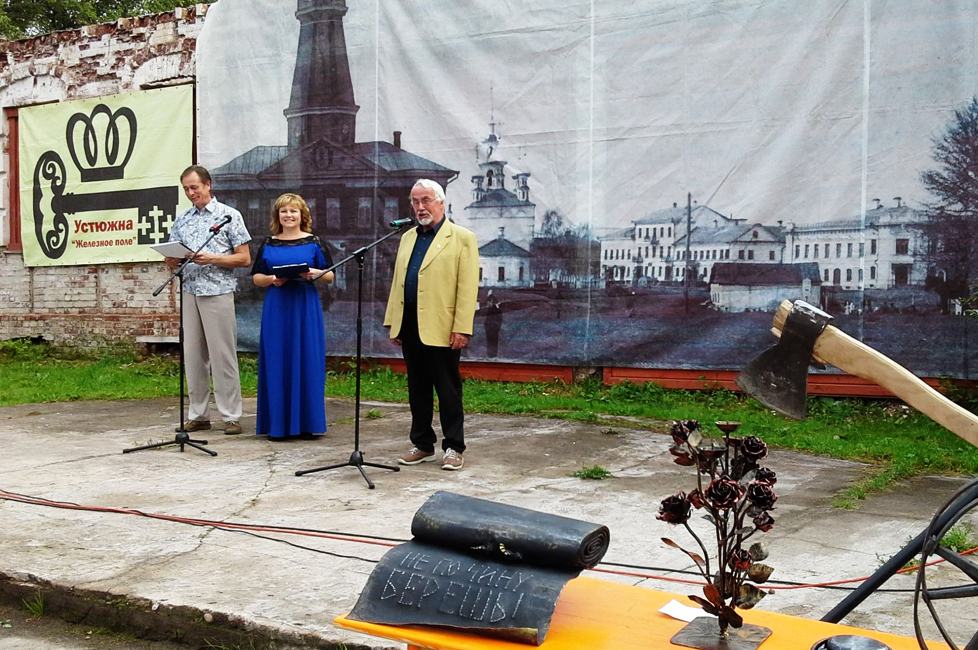 Участники IX Межрегионального фестиваля кузнечного мастерства «Железное поле» подарили устюжанам кованый стенд с изображением города, сообщает портал Правительства области.
