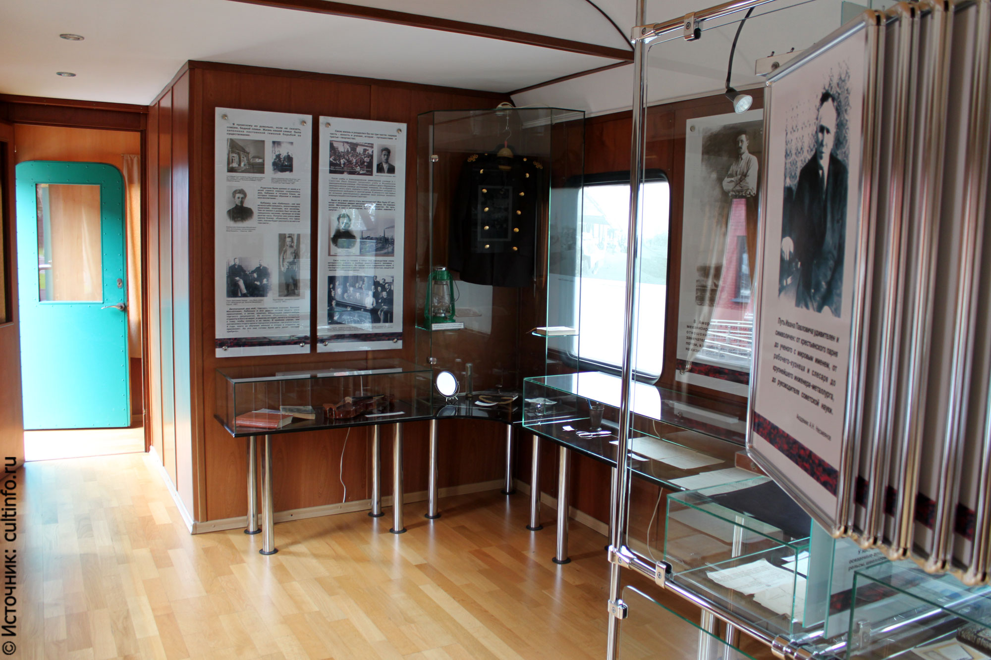 Вагон, в котором проводил свои академические будни Иван Павлович, представлен уютной квартиркой. Складывается такое ощущение, что академик просто в очередной раз отправился на завод понаблюдать за литьём стали и скоро вернётся. Небрежно брошенные у вагонной полки домашние тапки, фотография с любимой женой на прикроватном столике, ещё не остывшая от ночных чтений лампа и забытый впопыхах фотоаппарат. В соседнем помещении множество склянок с пробами, печатная машинка «Прогресс» с передвинутой кареткой, набор разновесов. И фраза на одном из стендов музея-вагона, которую любил повторять академик: «В основе действительного наслаждения человека своей работой лежит осуществление мечты, которая была руководящей идеей в течение всей сознательной жизни».