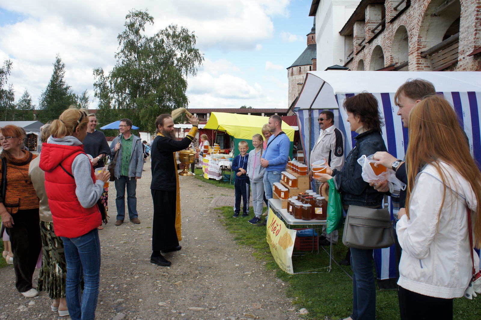 В Кирилло-Белозерском музее-заповеднике вновь прошел Фестиваль искусств «Достояние республики». Ещё в пятницу, 14 августа, в Новом городе церемонией освящения даров открылась ярмарка мёда. В разноцветных палатках, выстроившихся вдоль монастырской стены, покупатели могли приобрести медовую продукцию.