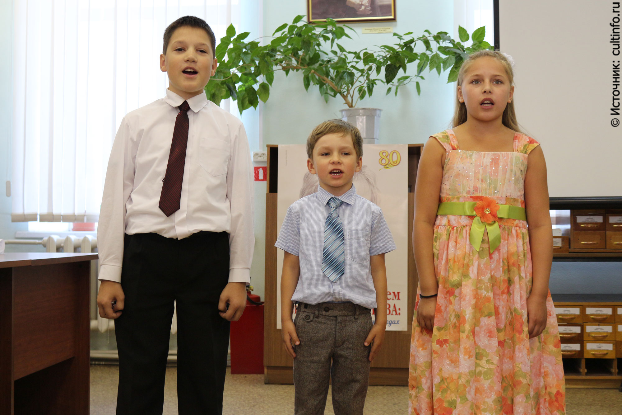 О своём видении произведений «часового детства» рассказали конкурсанты и зрители. Обсуждение книг Лиханова происходило под аккомпанемент мелодий, исполненных учащимися Детской музыкальной школы № 1.