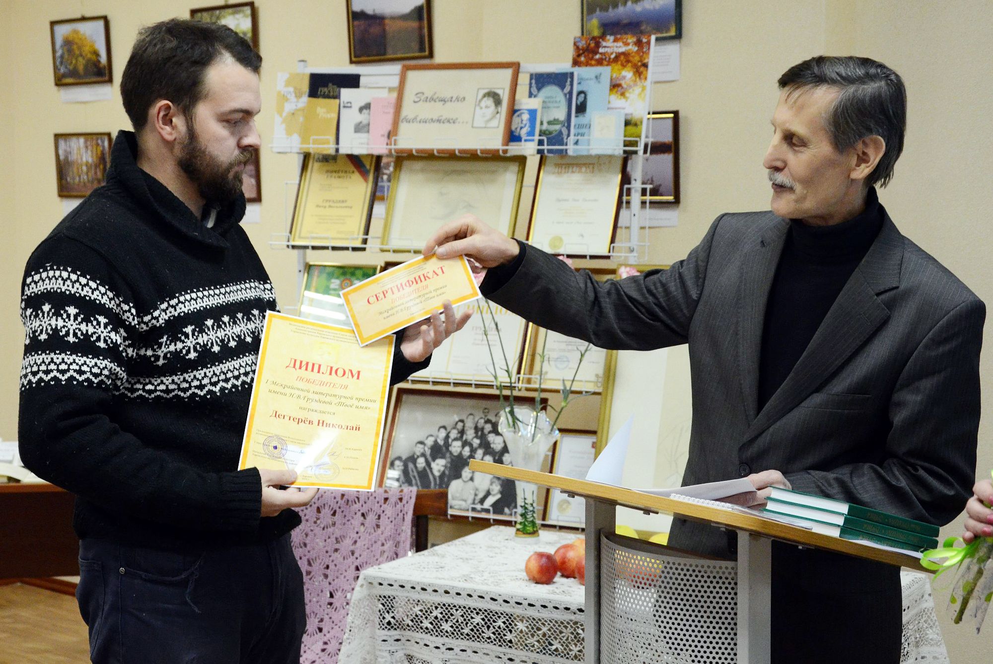 На вечере подвели итоги I Межрайонной литературной премии имени Н. В. Груздевой «Твоё имя». Свои работы прислали 54 участника из районов Вологодской области. Михаил Карачёв, председатель правления Вологодского регионального отделения Союза писателей России, объявил имена победителей. Ими стали Николай Дегтерёв (п. Шексна), Антонида Смолина (Великий Устюг), Владимир Соколов (Харовск). Был озвучен шорт-лист авторов, из которых и выбрали победителей. Туда, помимо лауреатов премии, вошли Антонина Брызгалова (Харовск), Татьяна Ветрова, Сергей Дорожковский, Татьяна Макарова (Кичменгский Городок), Наталья Мелёхина (Вологда), Александр Силинский (с. Тарнога), Евгений Туманов (п. Вожега), Николай Ярославцев (Тотьма).