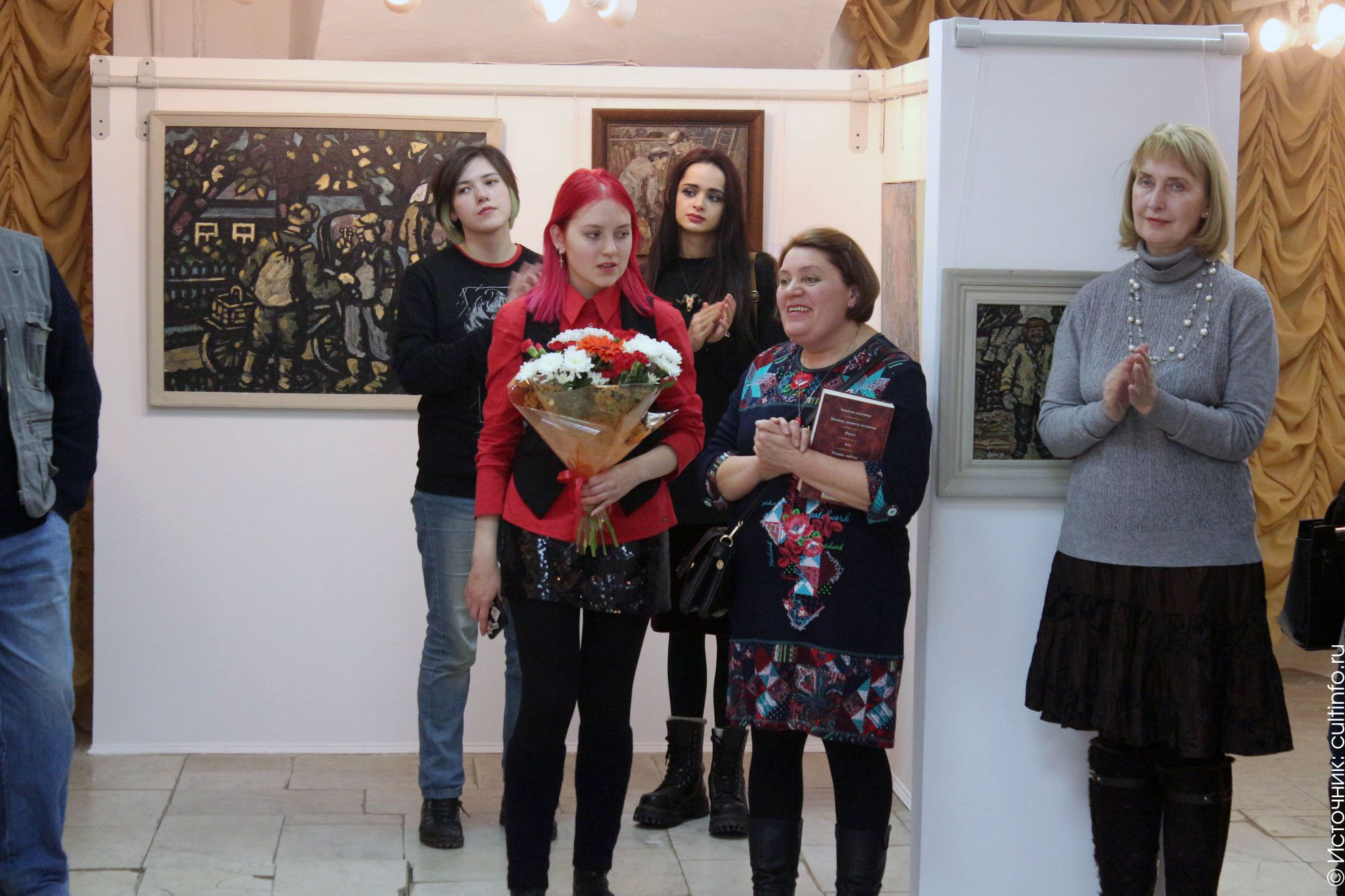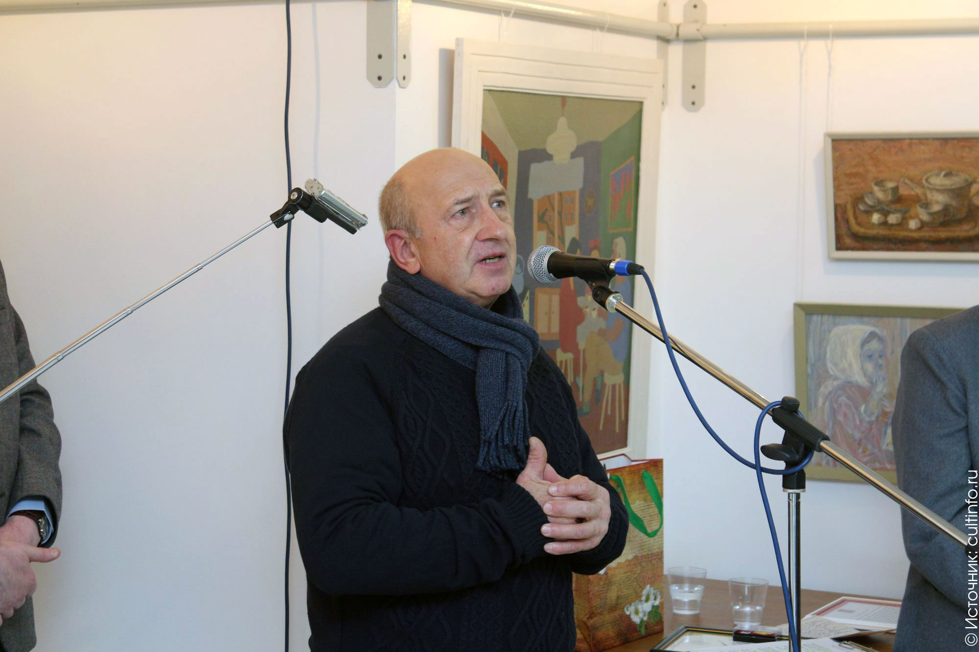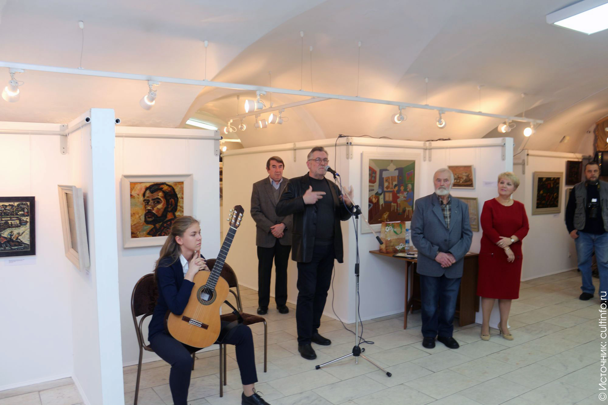 К поздравлениям присоединились родственники и коллеги художника, представители череповецкой культурной общественности. Вечер сопровождался классической гитарной музыкой в исполнении вологодских музыкантов Анастасии Поршневой (гитара) и Владимира Максимова (гитара).