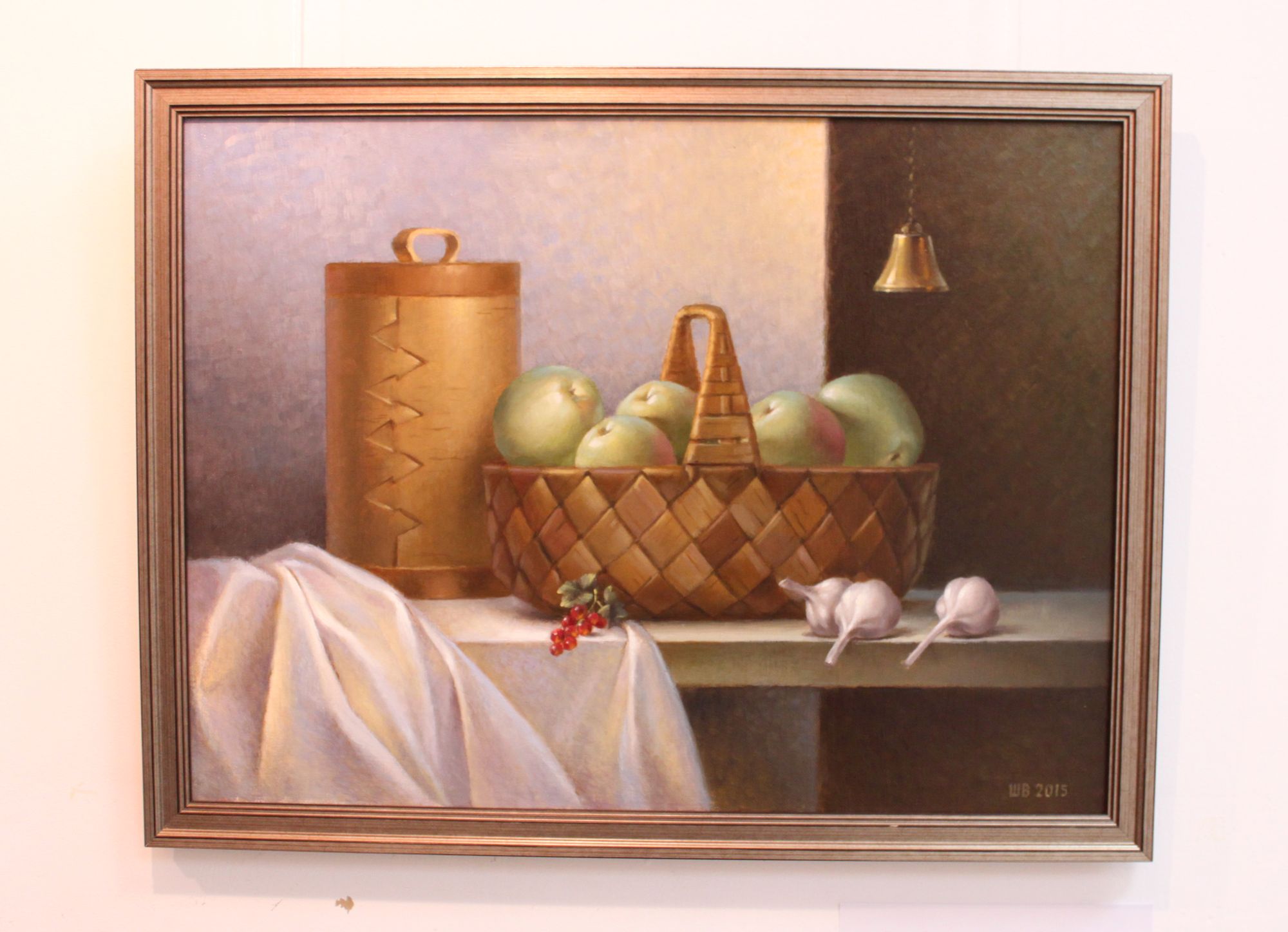 Что такое натюрморт, все мы знаем – если не по картинам мастеров, то уж точно по известному стихотворению Александра Кушнера, положенного на музыку и звучащего в популярном некогда мультфильме: «Если видишь на картине / Чашку кофе на столе, / Или морс в большом графине, / Или розу в хрустале, / Или бронзовую вазу, / Или грушу, или торт, / Или все предметы сразу, / Знай, что это натюрморт». И, видимо, поэт так точно уловил и передал в шуточных строчках суть этого жанра живописи, что именно они приходят на ум, когда заходишь в зал с работами Валентины Шапкиной. Здесь действительно есть всё – и груши, и цветы в вазах, и стакан чая, и старинная медная посуда, и «все предметы сразу». В Центральном выставочном зале Вологодской картинной галереи открылась выставка «Предметный разговор».