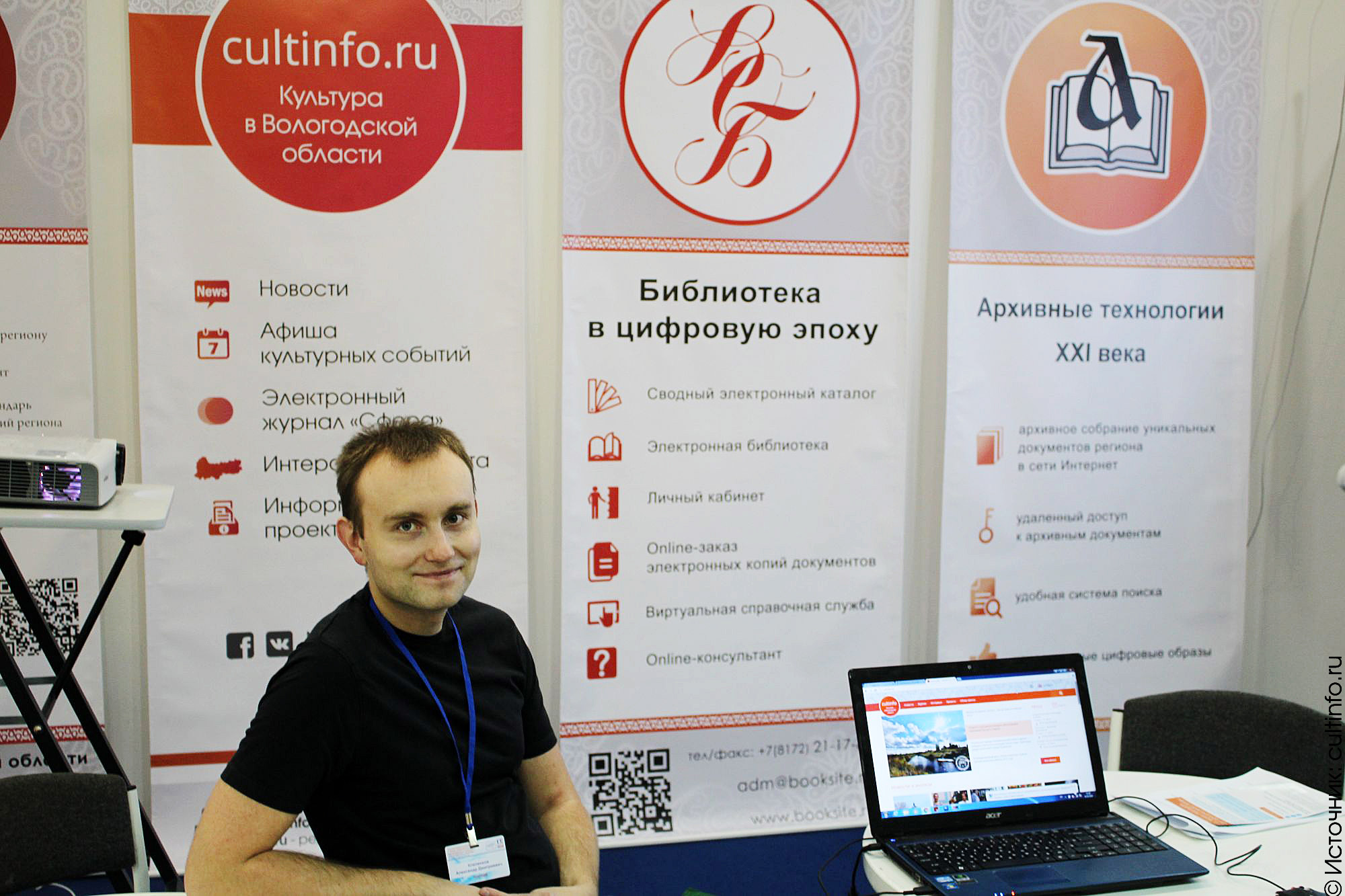 Информационным технологиям в сфере культуры посвящен отдельный стенд, где все желающие могут познакомиться с проектами информатизации в сферах культуры, туризма и архивного дела. Культура и туризм представлены на региональных ресурсах: интернет-портале « Культура в Вологодской области» cultinfo.ru и портале «Туризм в Вологодской области» vologdatourinfo.ru.