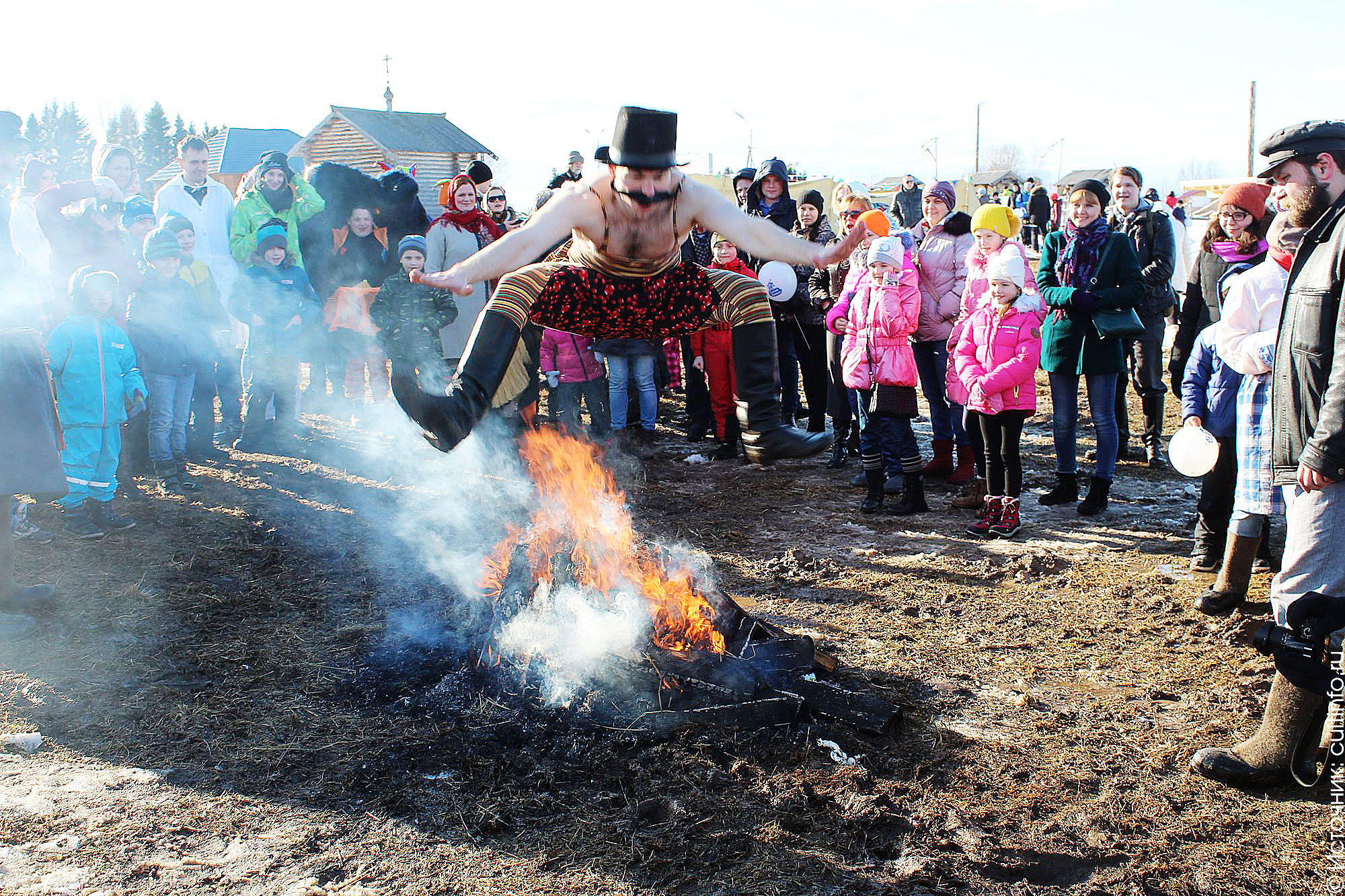 Широкая Масленица в Семенково в этом году по традиции также собрала сотни желающих проводить зиму. Попеть и поплясать под русскую гармонь, попробовать свои силы в масленичном многоборье по приглашению кота Семена, взять снежную крепость, поглазеть на масленичный поезд в сопровождении циркачей и ряженых, поучаствовать в помоле муки для выпечки двухметрового блина-великана, посоревноваться в поднятии тяжестей и прыгнуть на прощание через костер, оставшийся от сгоревшего чучела Масленицы, – все это и много другое смогли сотни гостей Архитектурно-этнографического музея Вологодской области, где два дня подряд проходили народные гуляния.