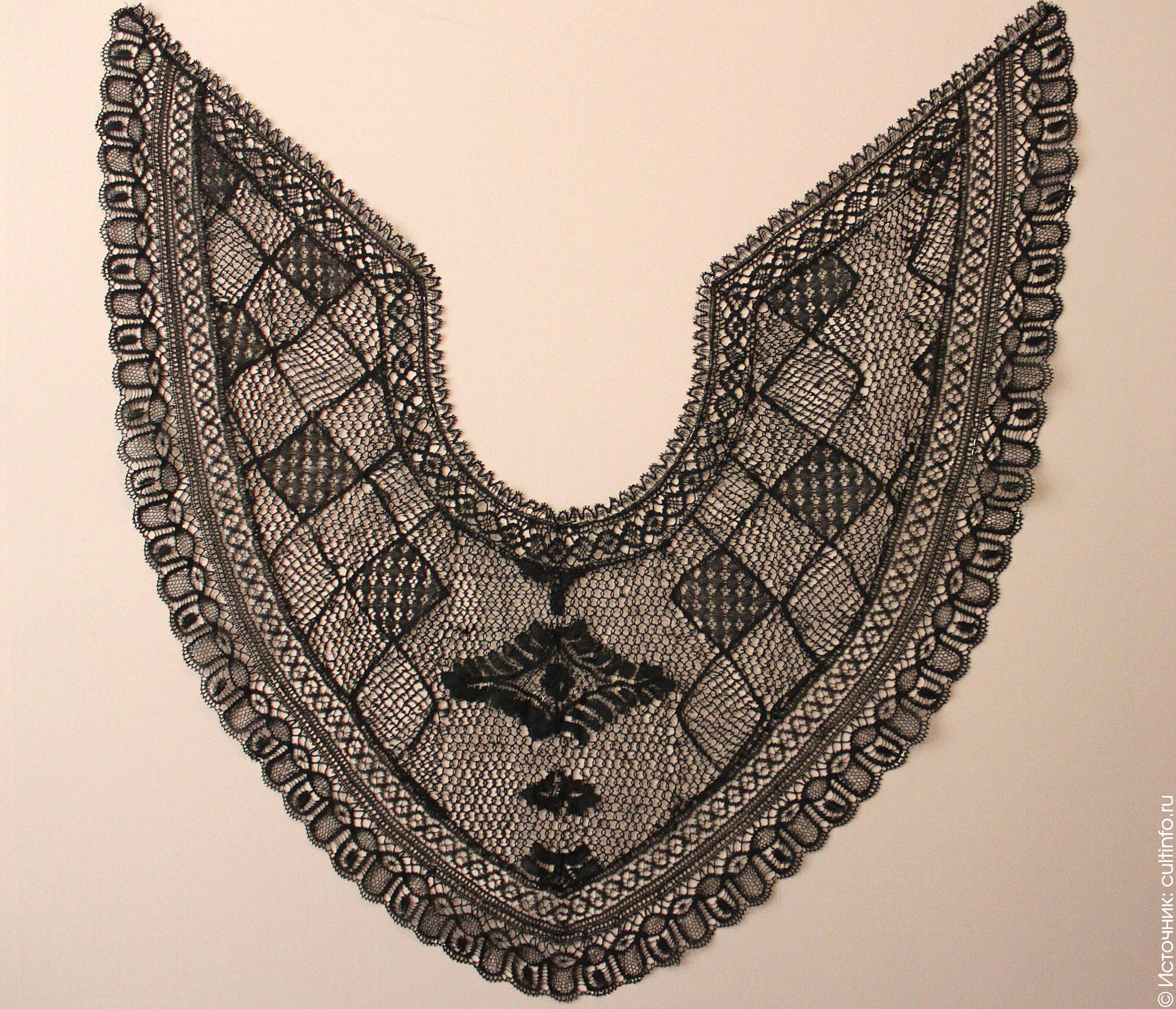 На выставке можно отследить, как менялась кружевная мода, какие рисунки преобладали в тот или иной период. Первый зал почти полностью посвящен шантильи. Это вид французского плетеного кружева, которое в середине XIX века покорило весь мир и оказало существенное влияние на стилистические особенности современных европейских кружевных изделий, предназначенных для модной индустрии. Каждая модница считала обязательным его наличие в гардеробе. Шантильи представляет собой плетеное кружево из черных шелковых нитей. Оно создается на большой плоской подушке. Маленькие вещи изготавливаются одним полотном, изделия более крупного размера делаются отдельными сегментами, которые впоследствии соединяются незаметным сцеплением. Рисунок кружева отличается сложностью построения и детальной проработкой – чаще всего это крупный узор из цветов (роз, тюльпанов, ирисов, колокольчиков, маков, вьюнков), который покрывает почти все свободное пространство. На выставке представлены мантильи, пелерины, шали, веера и зонтики, выполненные в этой технике.