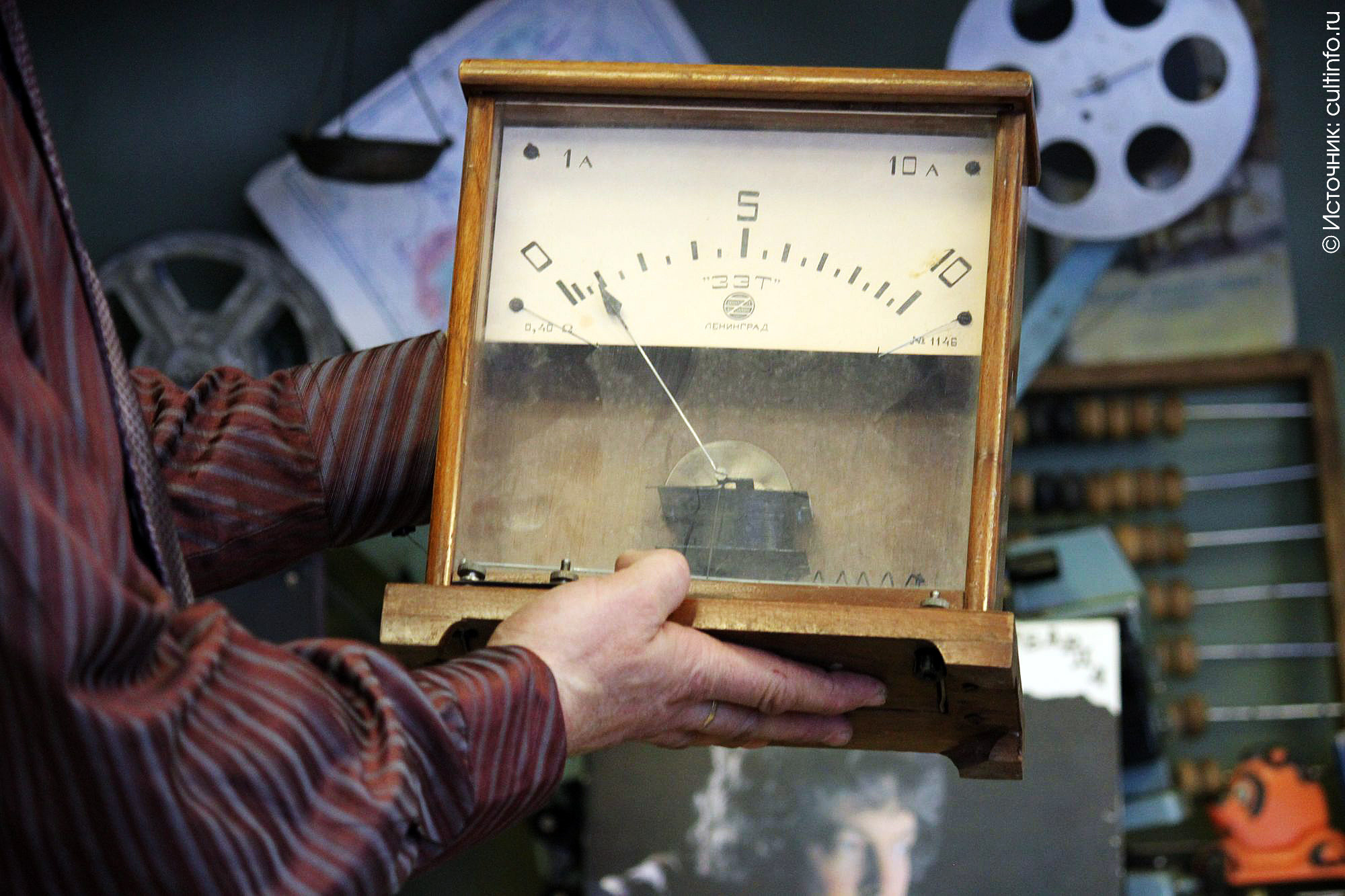 На выставке представлен кинопроектор с 16-миллиметровой пленкой. Он использовался для показов в небольших клубах, учебных заведениях или в машинах, так называемых кинопередвижках. Устройства считались большой редкостью, и не каждый мог себе их позволить, поэтому брали напрокат. А вот электропроигрыватели можно было увидеть во многих советских домах. Один из них был найден сталкерами в заброшенном здании. Устройства выпускались до 1990-х годов.