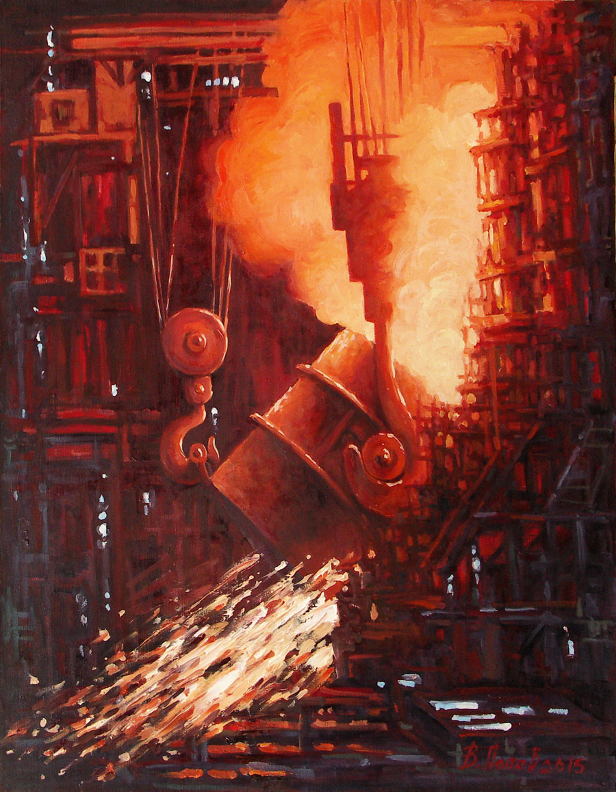Работа над темой индустриального пейзажа во многом позволила художникам по-новому подойти к проблемам композиции и пластического решения. Одних заинтересовало богатство форм и линий в сложнейших конструкциях (Р. В. Зубков «Конвертерное производство»), других – отображение самих производственных процессов на территории комбината и внутри цехов (О. В. Карпачёва «В локомотивном депо “Северстали”», «В листопрокатном цехе»). Находившись непосредственно в рабочей обстановке авторы искали свои приемы в выражении заводского колорита (М. М. Калинич «Серый день», 2015), возможности передачи игры света и тени в завораживающей магии раскаленного металла (А. М. Шебунин «Рождение проката»; А. В. Иоганн «В разливочном цеху»).
