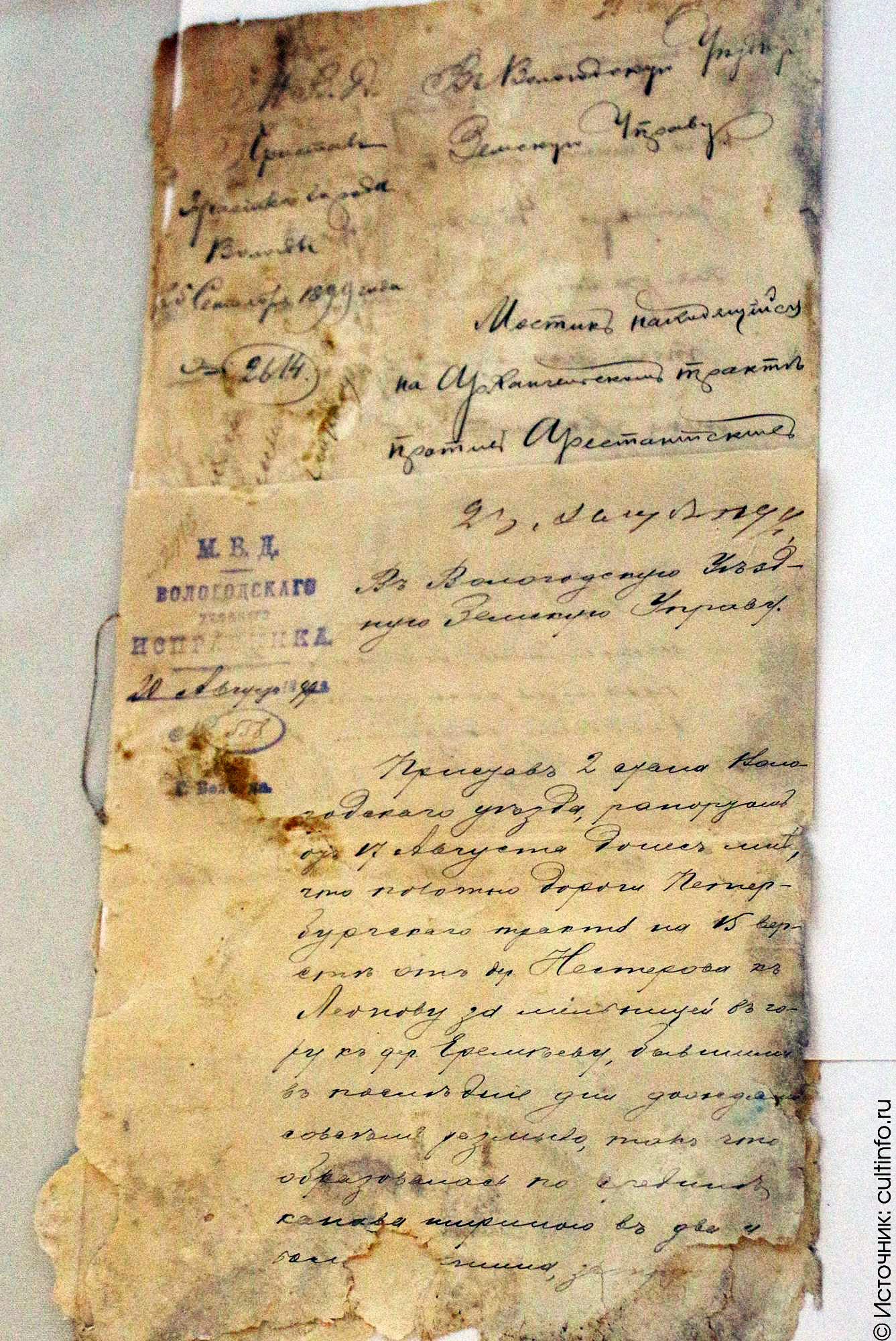Как рассказала художник-реставратор высшей категории Ольга Соколова, документ нашли строители на чердаке здания. Он представлял собой скомканный, поврежденный ржавчиной и плесенью кусок старой пожелтевшей бумаги. Реставраторам удалось восстановить более 10 листов и на некоторых из них полностью или частично прочесть текст. Документы написаны с января по ноябрь 1899 года. В основном это хозяйственно-экономические тексты: заявления и обращения граждан, рапорты в Вологодскую уездную земскую управу техников, связанные с ремонтом дорог и мостов. На некоторых листах сохранились штампы Вологодской уездной земской управы и почтовой телеграфской конторы МВД.