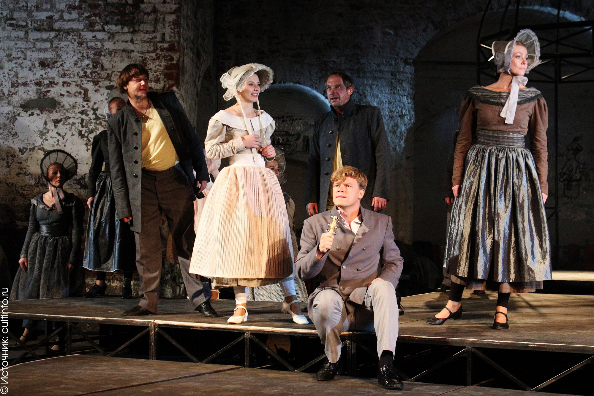 Артисты массовки играют не только людскую массу – в их исполнении мы видим буквально всё, включая дорогу, пожар и состояние тревоги, которое испытывают персонажи спектакля. В сцене дороги, например, динамика и экспрессия слов и жестов действительно создают иллюзию быстрого движения. Когда Маша оказывается взаперти перед свадьбой, стоящие рядом женщины угрожающе наматывают на кулак красные платки – это создает неподдельное напряжение и ощущение безвыходности. Выразительность массовки во многом зависит и от костюмов, придуманных художником Ольгой Резниченко: за счет нескольких «говорящих» деталей на глазах у зрителей одни и те же артисты мгновенно преображаются – из светских дам и барышень в крестьянок и наоборот. Хореограф Наталья Петрова-Рудая сделала танцевальные сцены органично вплетенными в драматическое действие.