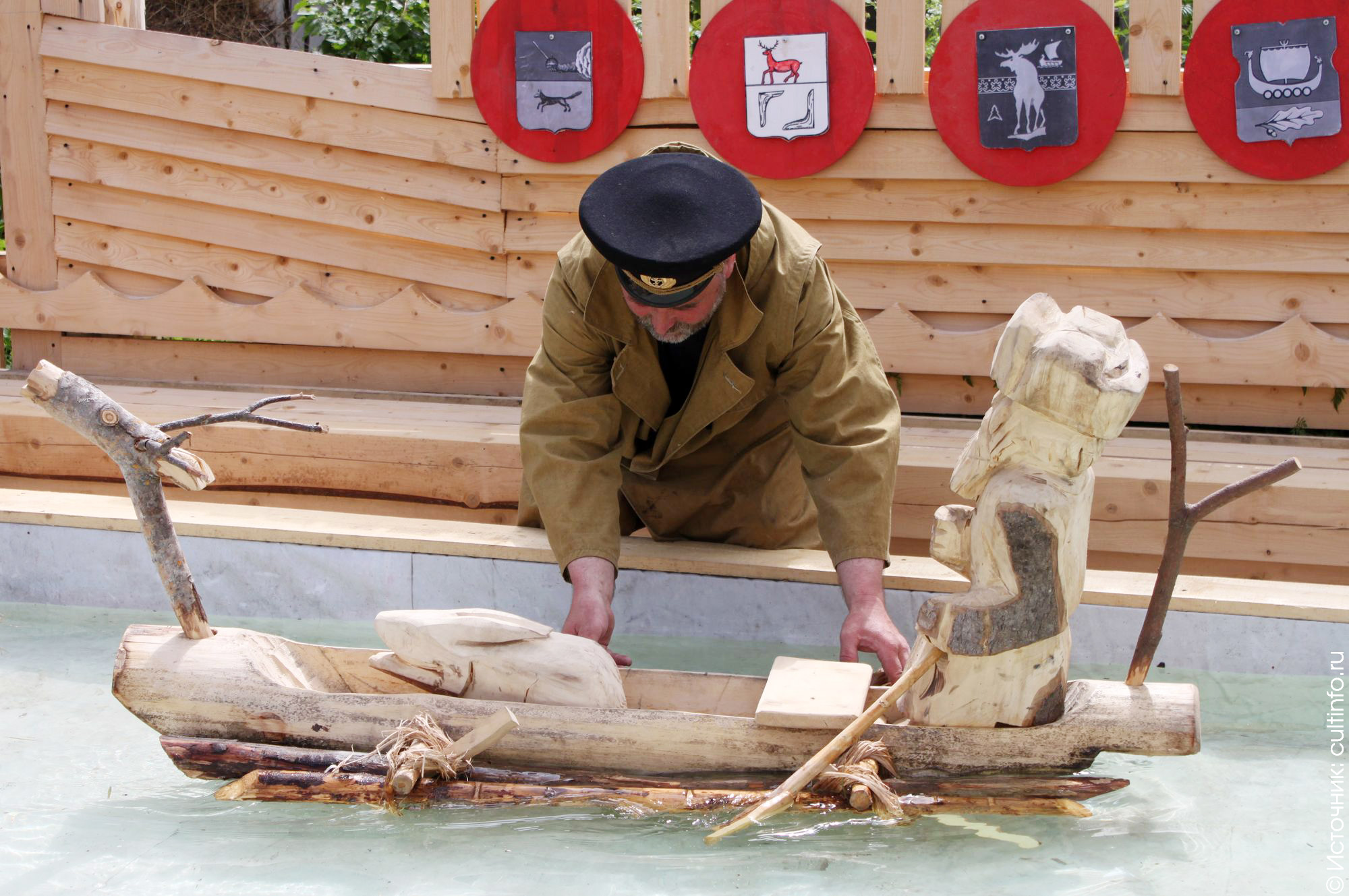 Интерактивные занятия и игры ожидают посетителей в третьей части экскурсии. Здесь можно попробовать себя в роли капитана корабля, вытащить лодку на берег при помощи лебедки, научиться правильно грести, поднять трехметровый меч-кладенец.
