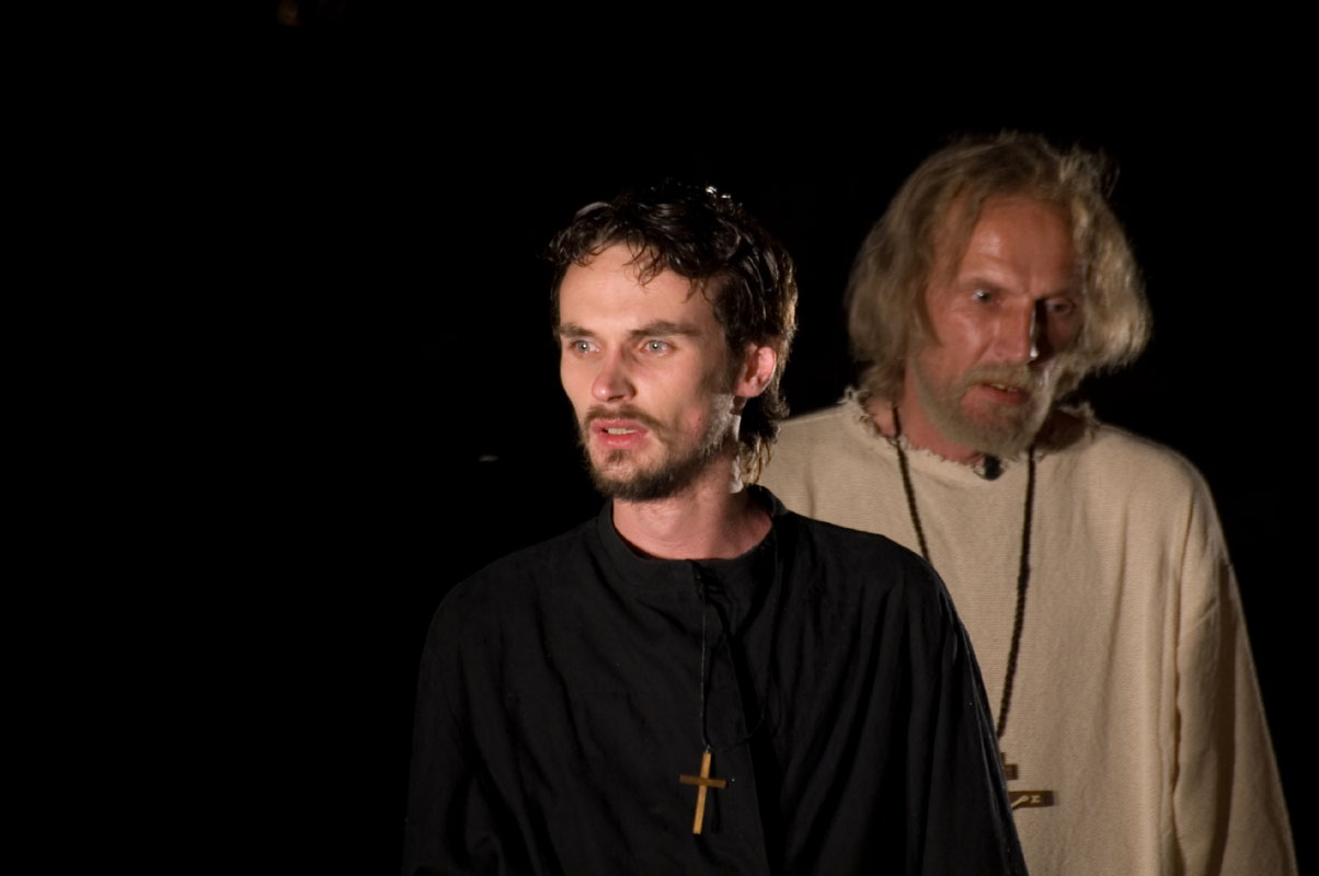 Для XIII театрального фестиваля «Голоса истории» Вологодский драмтеатр выбрал непростой для постановки материал. В основу спектакля «Святая обитель» положены житийные и библейские тексты. Но, как заметил режиссер спектакля художественный руководитель драмтеатра Зураб Нанобашвили на прошедшей накануне пресс-конференции, посвященной грядущим «Голосам», «это не будет история какого-то конкретного святого, реального исторического лица. Мы сознательно делали образы героев собирательными, «вневременными», если хотите, потому что нам важна не внешняя, житейская, бытовая канва, а духовный поиск, приход – в первую очередь внутри себя – к святой обители. Тексты, положенные в основу спектакля, просты, понятны и доступны каждому – но в этой простоте и кроется как раз высшая мудрость, выстраданная поколениями истина, которую – может быть, в силу кажущейся простоты или даже наивности – мы порой не замечаем...» Поэтому, наверное, и в произношении текста пьесы создатели спектакля уходят от мелодики молитв, стремясь, чтобы слова звучали естественной речью, обращением «из сердца».