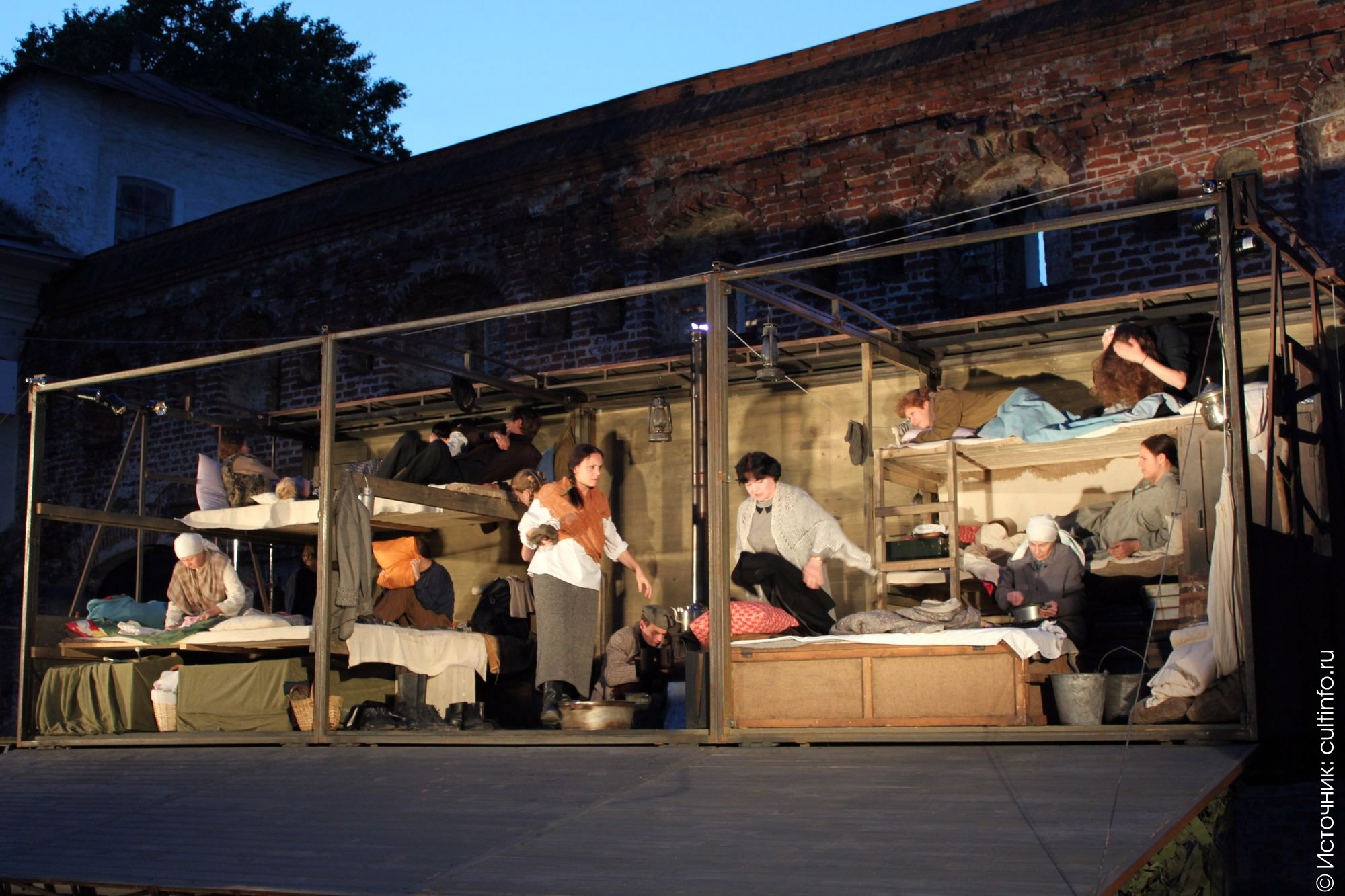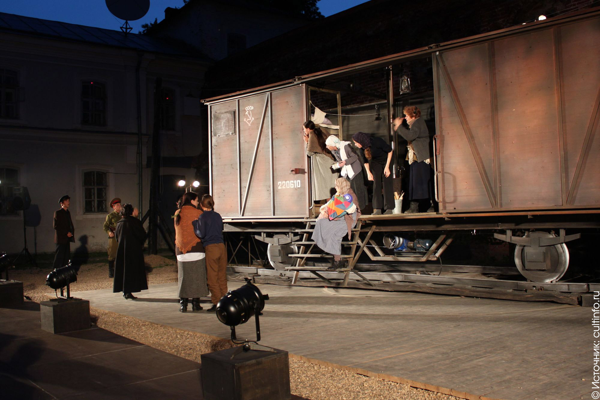 К фестивалю «Голоса истории» Вологодский драматический театр всегда готовится особо. Экспериментируя с материалом, формой, местом действия – благо рамки и концепция open-air фестиваля это позволяют – режиссер и труппа создают каждый раз особый художественный мир, творческое высказывание, полностью адекватное формату, тематике, стилистике фестиваля и каждый раз открывающее новые грани возможностей театра: «Сон в летнюю ночь», «Дневник Анны», «Карамазовы и ад», «Эшелон», «Ричард II»...