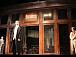 Ожидания, что в спектакле будут звучать пафосные нотки и привычный упор будет сделан на нагнетание ужаса нацистских преступлений, не оправдались. Зал суда и все его привычные атрибуты – трибуны для судей и прокурора, скамья подсудимых, – неожиданно оборачиваются рестораном, где между столиками бесшумно снуют официанты, на эстраде звучат нехитрые музыкальные композиции и все – заканчивая подсудимыми (а вернее, начиная с них) – ужинают, потягивают из кружек шнапс или пиво, неторопливо разговаривая вполголоса. Среди этой вполне миролюбивой картины судья Хейвуд (Александр Гришин) с попыткой судейской риторики поначалу выглядит неуместно, инородно, отрывая от «важных» застольных дел бывших нацистских судей, чьи имена и должности он словно бы смущенно называет.
