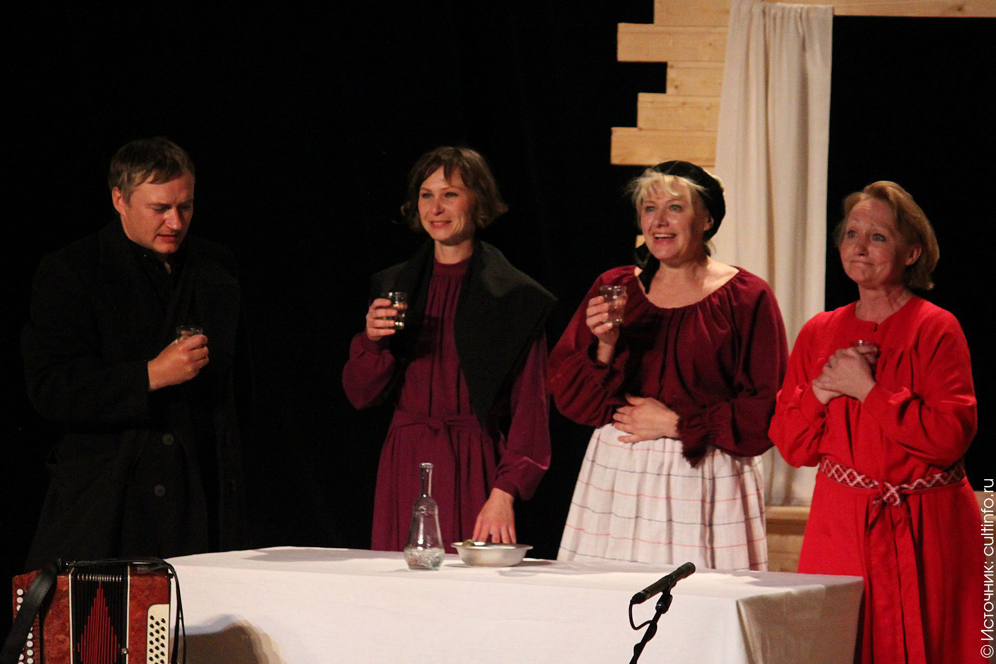Этот спектакль представил на суд вологодской фестивальной публики театр «Орловская антреприза» под руководством режиссера Павла Минакова. Тема Великой Отечественной войны, по-прежнему животрепещущая и больная, раскрывается здесь с точки зрения женщины, проводившей мужа на фронт и оставшейся один на один со всеми бедами, которые несет с собой война.