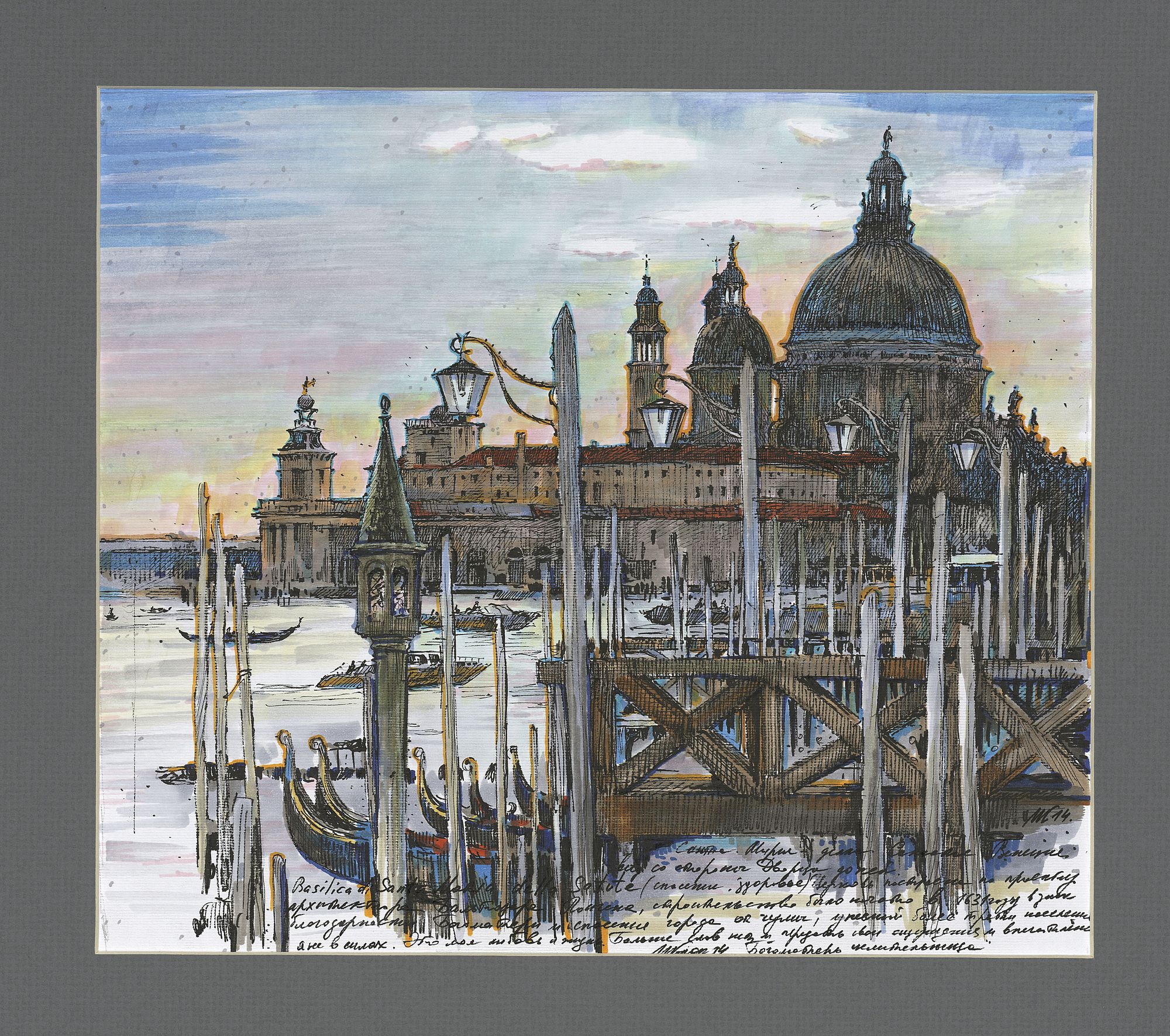 На выставке посетители увидят работы художника, выполненные в технике офорта и цветными фломастерами. Это виды городов России и зарубежья, памятники культуры, монастыри, храмы.