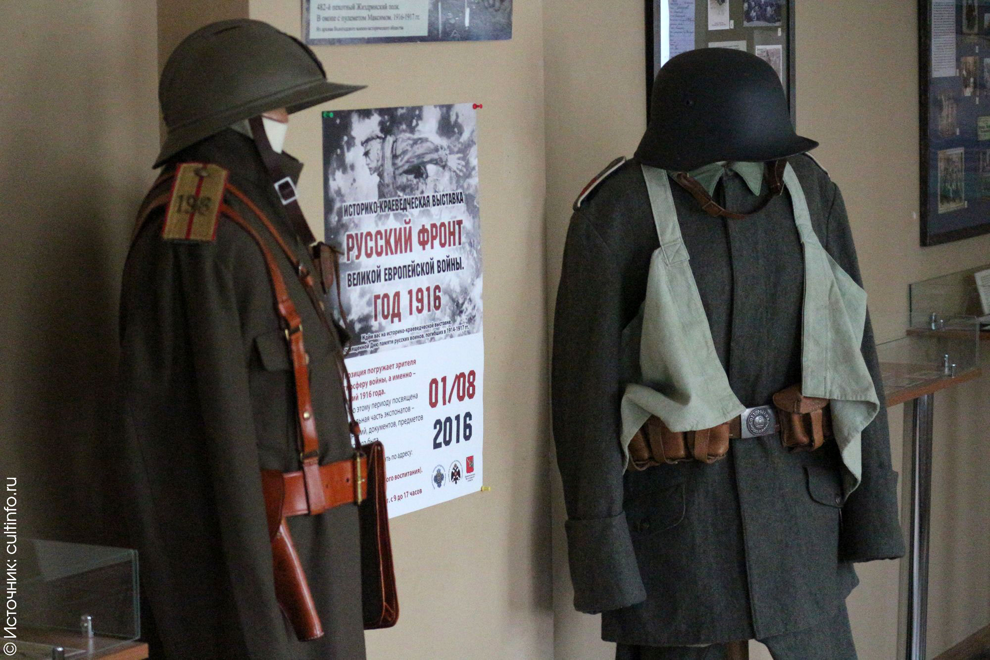 Выставка «Русский фронт Великой европейской войны. Год 1916» продолжает свою работу в городском Центре патриотического воспитания. Она подготовлена региональным отделением Российского военно-исторического общества при поддержке областного правительства ко Дню памяти воинов, погибших в Первой мировой войне. В экспозиции – порядка сотни экспонатов, в том числе фотографии, документы, личные вещи вологжан – участников войны.