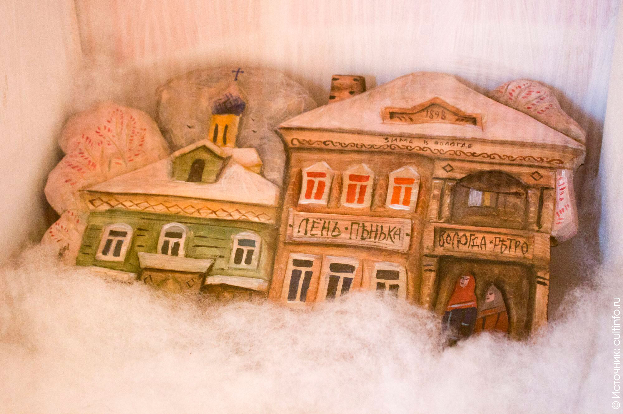 «За каждой дверью может оказаться всего лишь вещь или настоящее чудо», – гласит надпись на шкатулке. И действительно, за каждой дверью – произведение искусства, можно сказать «чудо»: глиняное печенье, валенки с кружевом, волшебные снежинки, деревянные дома, куклы-тильды и многое другое.