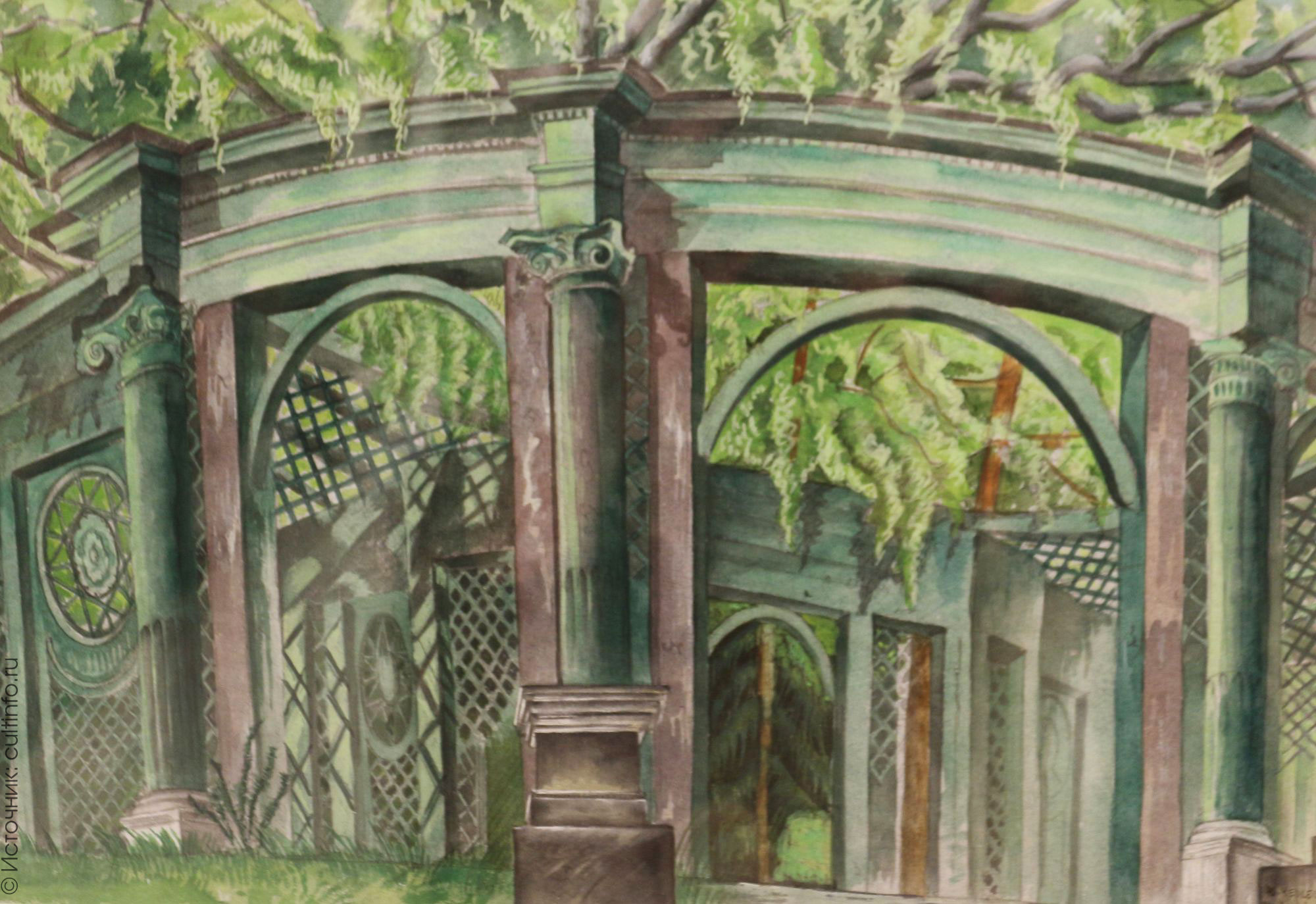 Альберт Николаевич Бенуа (1852 – 1936), один из организаторов популярного в России 1880-х –1890-х годов «Общества русских акварелистов», представлен в собрании ВОКГ двумя великолепными акварелями, а его младший брат Александр Николаевич Бенуа (1870 – 1960), возглавлявший на протяжении многих лет художественное объединение «Мир искусства», – как мастер станковой живописи и театральный художник.