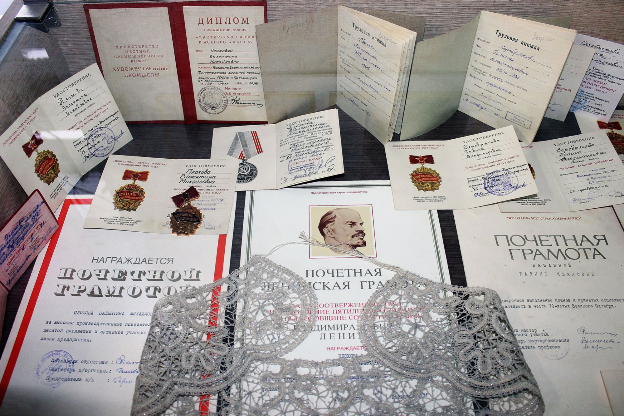 Татьяна Таланова, инициатор проекта, специалист Устьянского сельского поселения, рассказала о заднесельской кружевной артели, которая была организована в 1921 году: «Первым председателем стал Павел Баранов, уроженец деревни Фоминское. Женщины плели кружева на дому – общей мастерской в то время не было. Сдавать готовые изделия кружевницы из окрестных деревень приходили в Заднее. Скупщица кружев останавливалась в доме Татьяны Хоботовой. Она же привозила нитки. Артель была многочисленной, в ней трудилось 1295 человек. Планы давались большие, но их даже перевыполняли, за что работниц награждали премиями».
