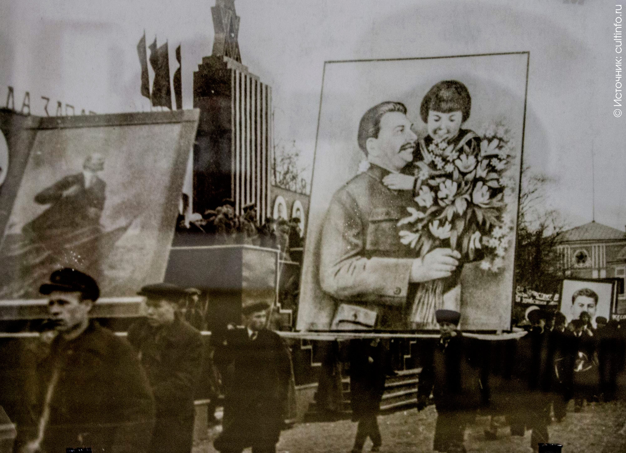 «Плакаты задают некий официальный идеологический тон, демонстрируя нам лозунги, которые власть «бросала» в массы. Можно предъявлять много претензий к советской власти, однако их лозунги были понятны людям, они побуждали их к действию, вдохновляли, – отмечает Галина Козина, заведующая отделом истории Вологодского музея. – И далее, отталкиваясь от плакатов, мы показываем фотографии, где видно, как эти лозунги воспринимались людьми на повседневном уровне. Например, в первые годы после Октября был призыв «Защитим революцию», и праздник больше походил на военный парад, в сталинские годы он приобрел более пафосный характер. Но это всегда был большой праздник, и это ощущение праздника видно на снимках».