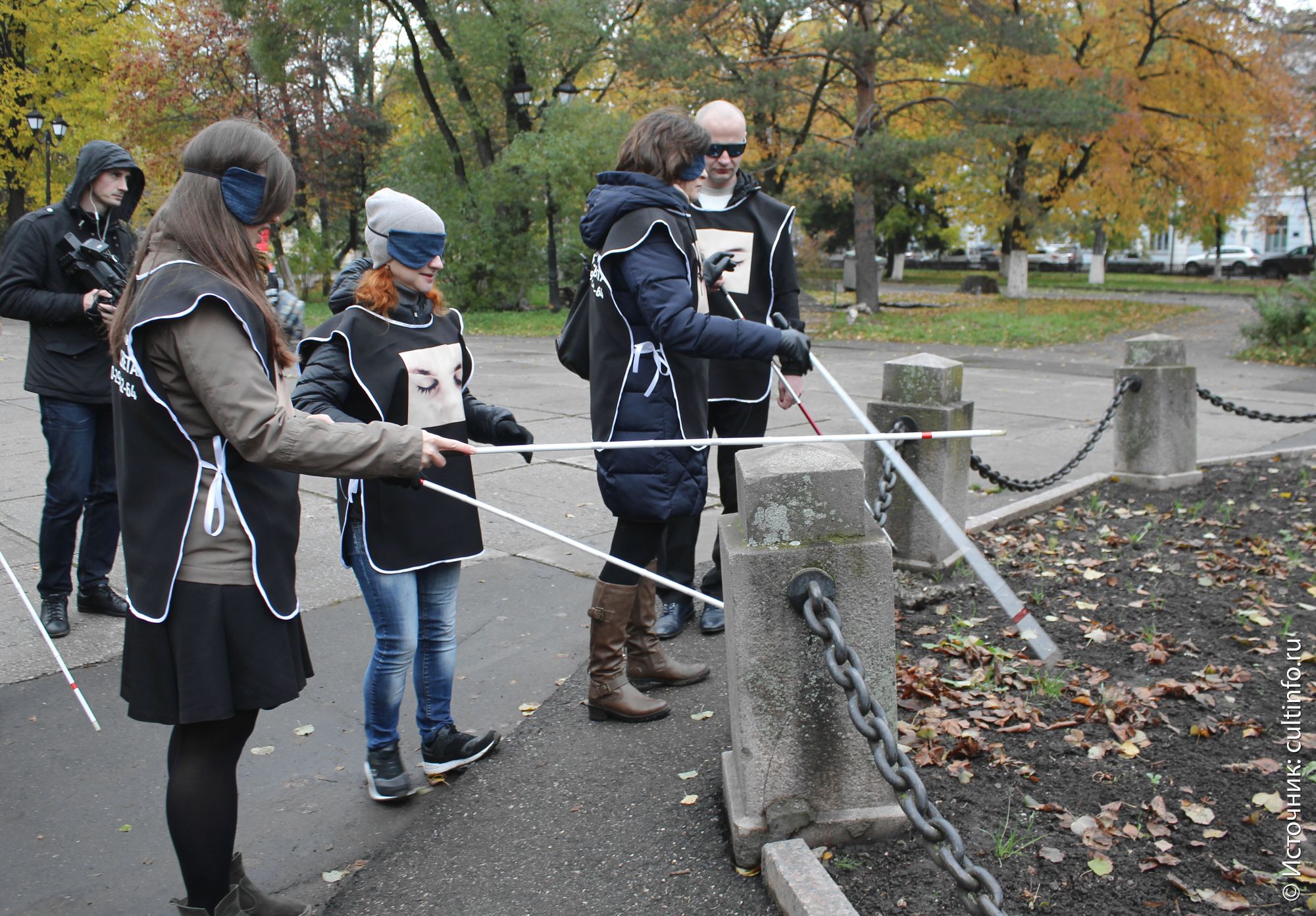 Надев на глаза плотную повязку и взяв в руки белую трость, действительно ощущаешь себя в другом мире, который настораживает и пугает. В обычной жизни бóльшую часть информации мы получаем благодаря зрению, и, когда этот способ восприятия утрачивается, даже простой шаг вперед дается с трудом. По просьбе экскурсовода участники экскурсии постоянно делились своими ощущениями – в первые минуты это паника, растерянность, невозможность сориентироваться в пространстве. Привычные уличные шумы, особенно звук движущегося транспорта, вызывают страх – оказывается, определить на слух, куда и насколько близко к тебе едет машина, очень сложно. Идти оказалось возможно только на голос экскурсовода, и то каждый шаг дается с большим трудом: вроде бы ровный тротуар кажется состоящим сплошь из трещин и неровностей, в которых постоянно застревает конец трости. Те экскурсанты, которые ни разу по ходу прогулки не снимали повязку (журналистам пришлось это делать), в конце маршрута удивились: им казалось, что группа двигалась совершенно в другом направлении.